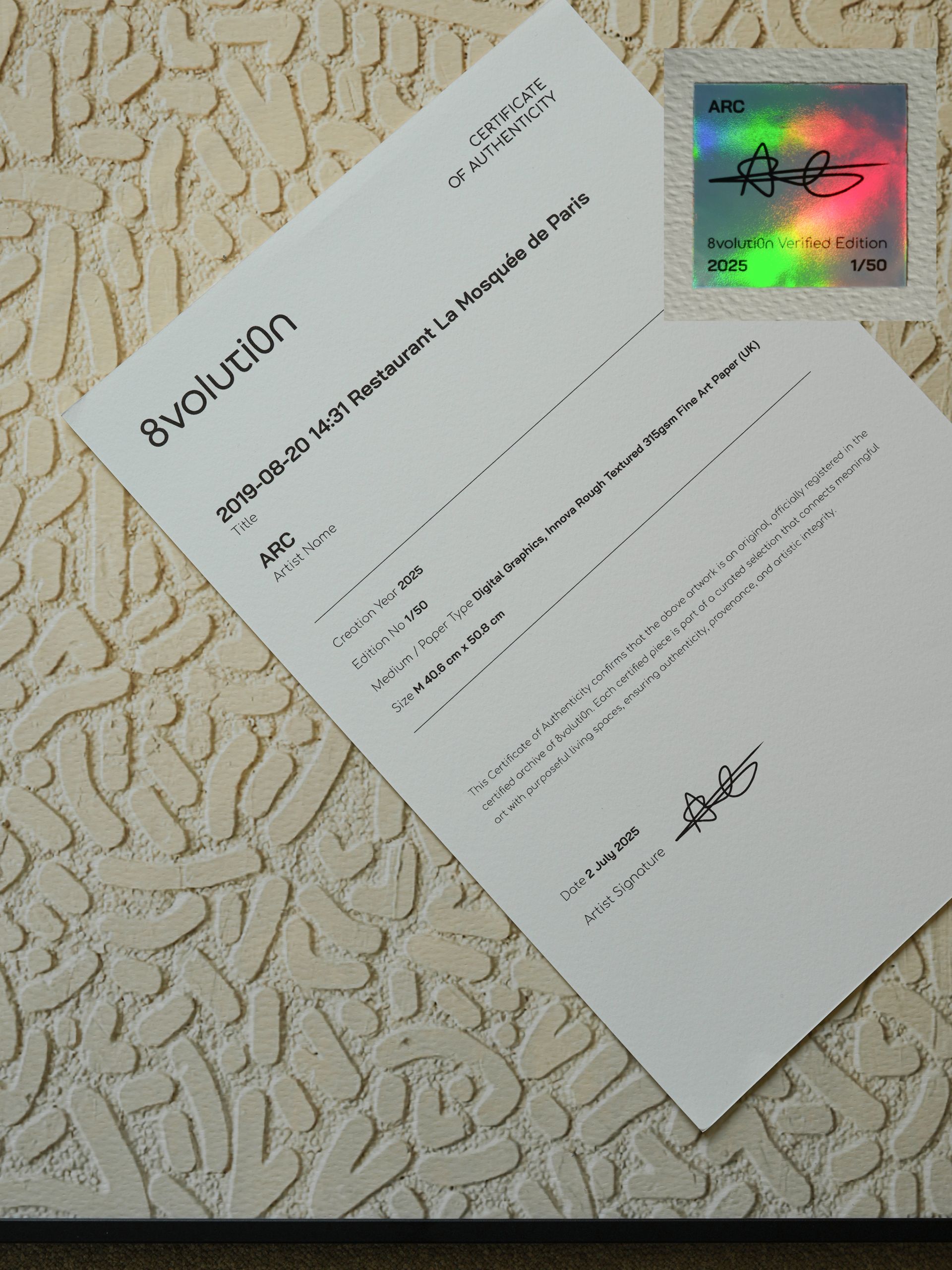 • 인증서 제공 : 아트 프린트 뒷면 아티스트 서명과 에디션 넘버가 포함된 인증 홀로그램 스티커가 부착되며, 실물 보증서(Certificate of Authenticity)가 함께 제공됩니다.