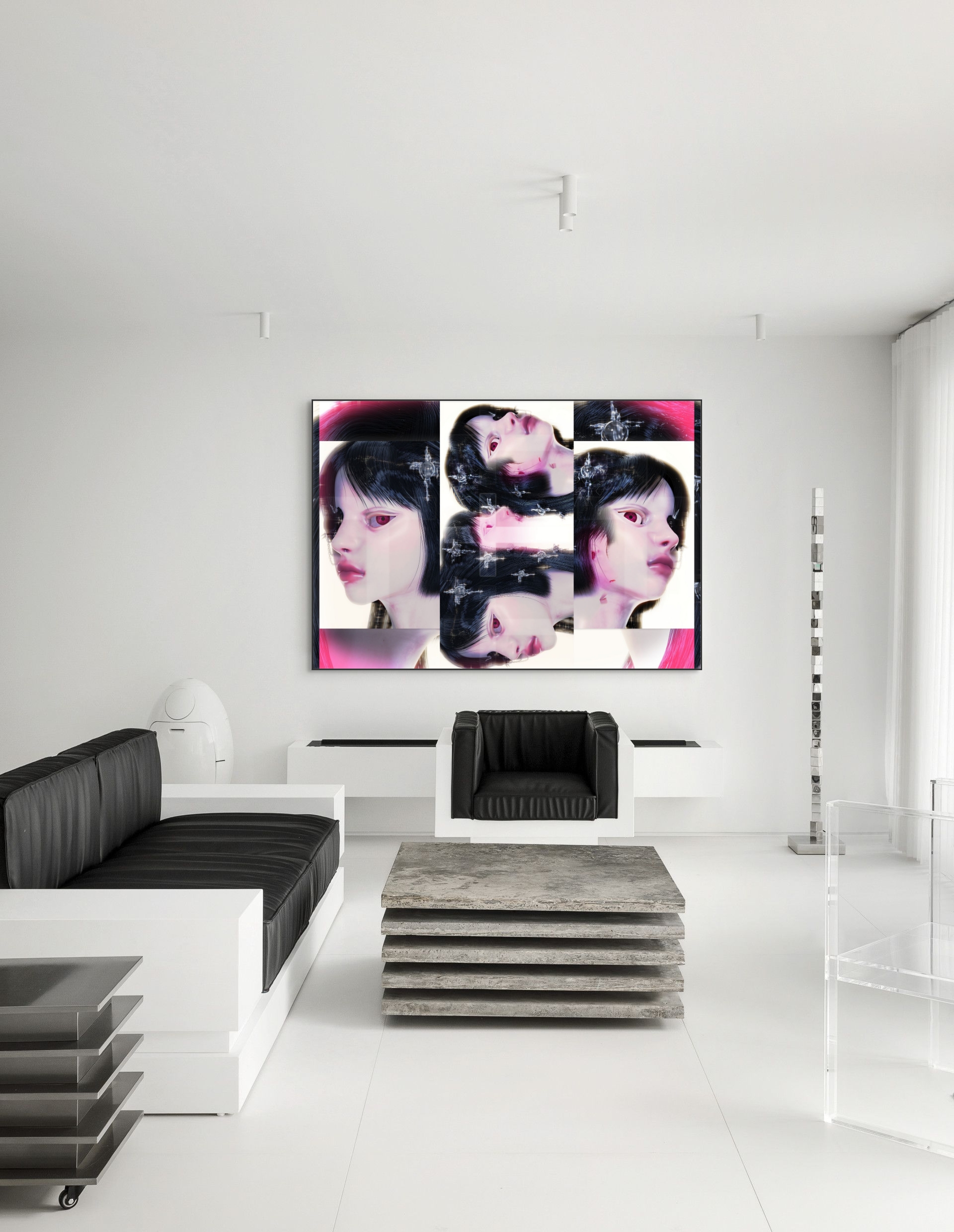 현실보다 선명한 얼굴, 반복되는 시선, 인위적으로 조율된 감정의 흔들림. 이 작품은 디지털 인물의 단편적인 정체성을 조각처럼 겹쳐내며, 인간성과 비인간성의 경계에 질문을 던집니다. 왜곡된 구도와 중첩된 시선은 관찰의 불안과 자아의 분열을 은유하며, 마치 감정 알고리즘이 만들어낸 새로운 초상처럼, 낯설고도 아름다운 감각을 자아냅니다.