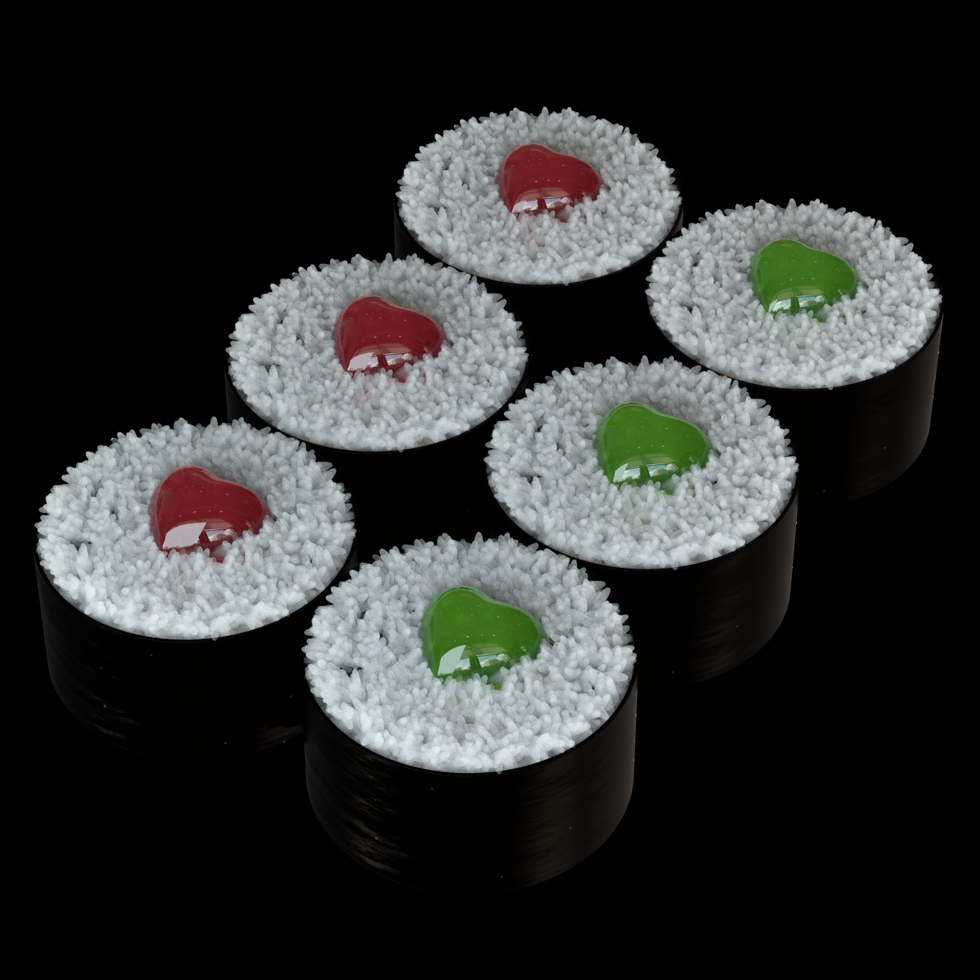 수목 작가의 초밥 시리즈는 현실과 가상을 넘나드는 상상력으로 재해석된 감각적인 세계입니다. 유리처럼 투명하거나 금속처럼 매끄러운 질감, 생명체처럼 꿈틀거리는 형상들은 모두 가상 데이터를 기반으로 구현된 디지털 조각으로 초밥이라는 익숙한 오브제를 통해 낯선 감각과 감정을 불러일으킵니다. 디지털 푸드 판타지의 경계에서 탄생한 이 시리즈는 익숙함 속의 낯섦, 현실 속의 환상을 발견하게 만듭니다.