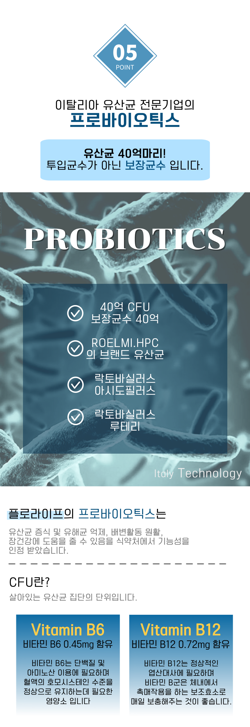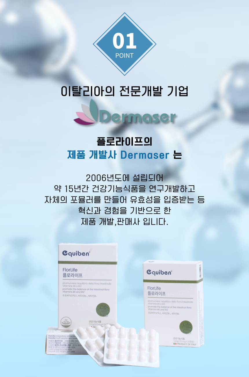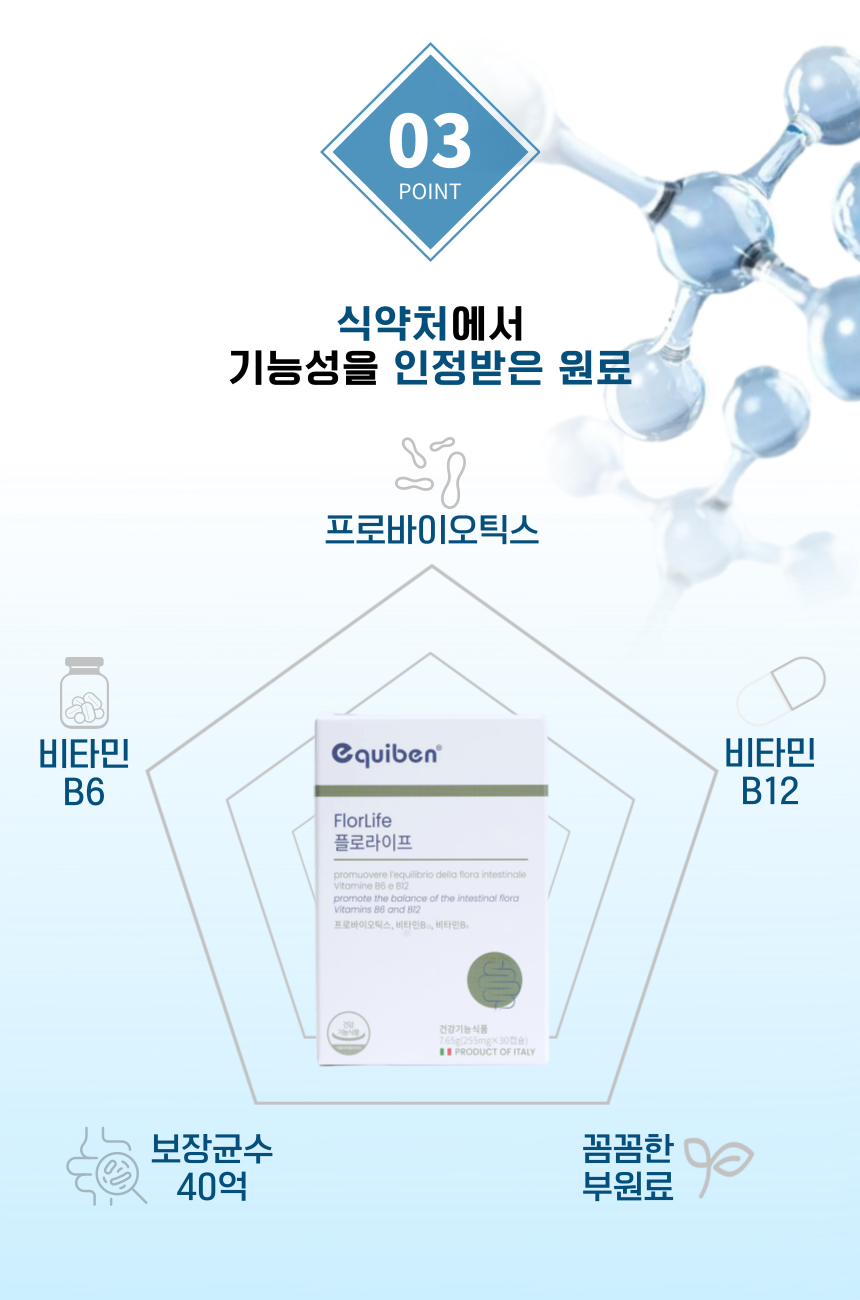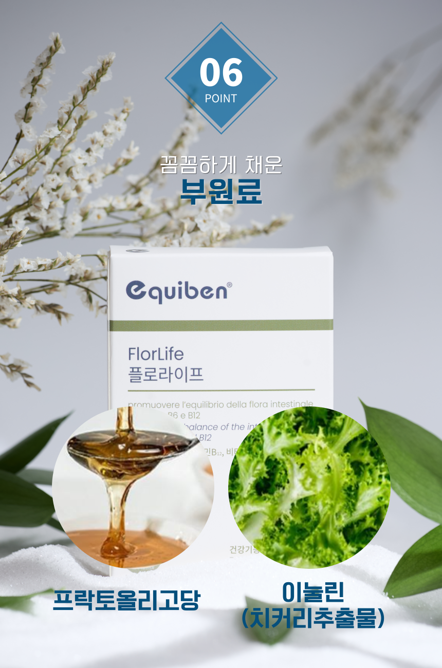 플로라이프(FlorLife)는 이탈리아 현지 병원과 약국에서 판매되는 온 가족용 프리미엄 유산균으로, 10일 내 장 건강 개선 효과를 목표로 설계된 고기능성 제품입니다. 유산균과 비타민을 최적의 밸런스로 배합해 장내 환경을 부드럽게 조절하며, 어린이부터 성인까지 누구나 안심하고 섭취할 수 있도록 만든 이큐벤의 대표 맞춤형 유산균 솔루션입니다.