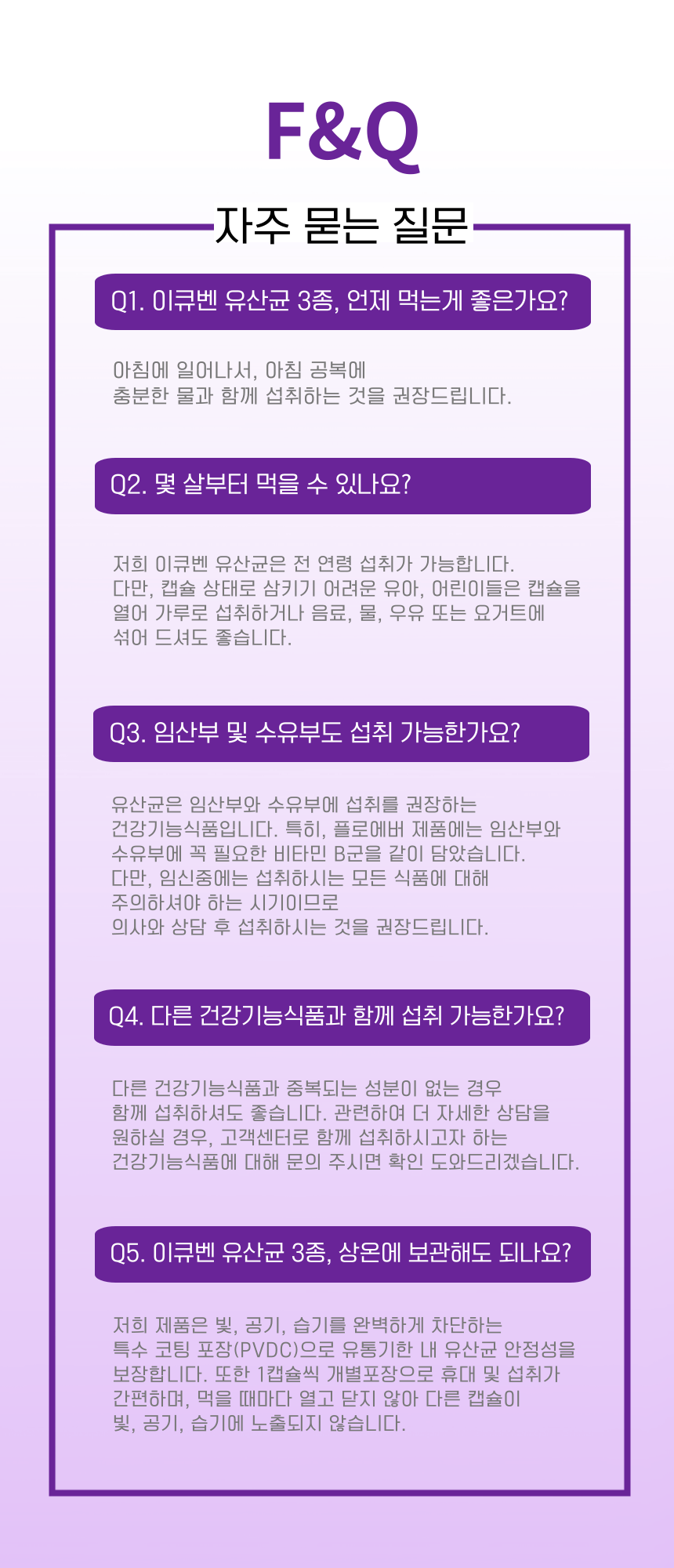 이큐벤은 세계 유산균 협회에서 인증된 원료를 최상의 배합으로 고기능성 장건강 솔루션을 선사합니다.