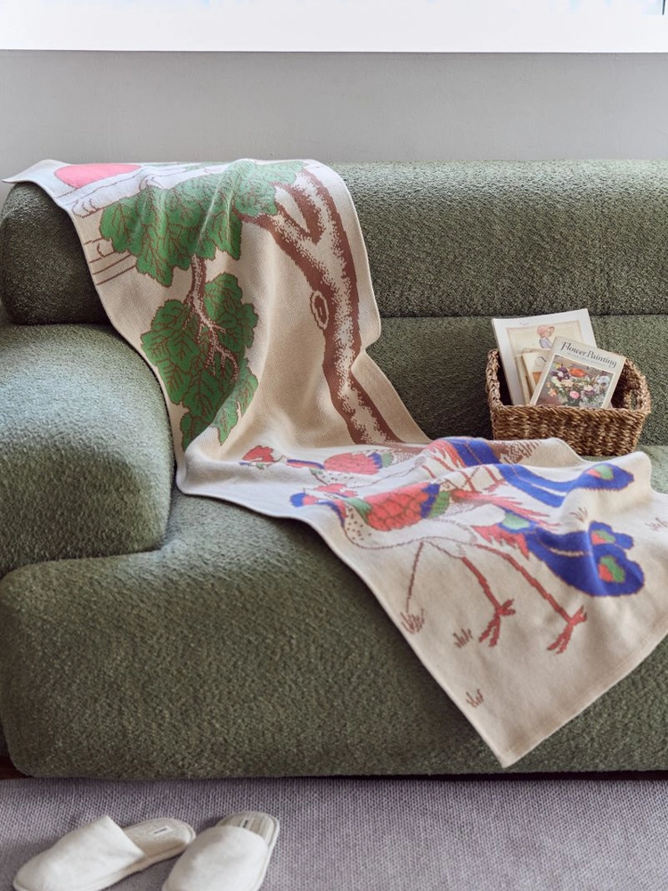 장생도는 오래도록 행복하게 살기를 바라는 마음을 담아 그린 그림으로, 그중에서도 학은 우아한 자태로 인해 길상과 장수의 상징으로 여겨집니다. 이 블랑켓은 바위 위에 모란꽃과 함께 두 마리의 학을 그려 넣어, 부부가 영원히 부귀영화를 누리며 다정하고 행복한 삶을 살기를 기원하는 의미를 전합니다. 웃고 있는 학의 모습을 파스텔 톤의 색감으로 표현해, 보는 이로 하여금 따뜻하고 기분 좋은 감성을 느끼게 하는 디자인으로 편안한 분위기 속에 전통의 상징성과 감각적인 색감이 조화된 상품입니다.