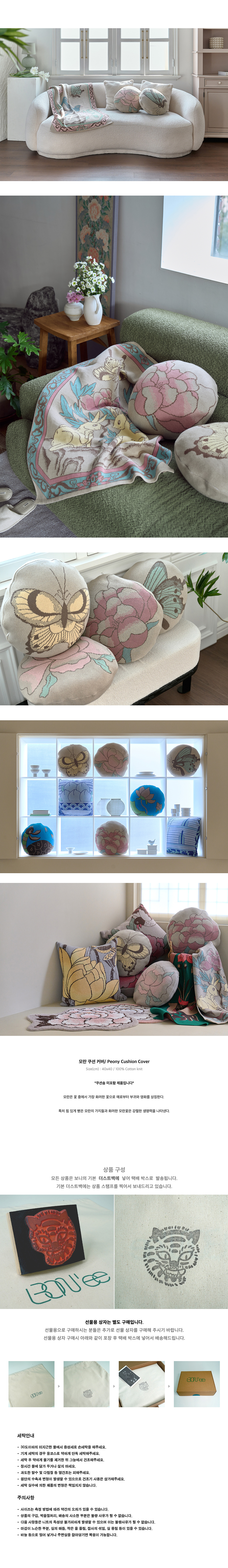 모란은 예로부터 부귀와 영화를 상징하는, 꽃 중에서도 가장 화려한 꽃으로 여겨졌습니다. 힘차게 뻗어나온 가지들과 만개한 모란꽃은 강렬한 생명력을 표현합니다. 공간에 생기와 기운을 불어넣는 감성적인 디자인의 쿠션커버 입니다.