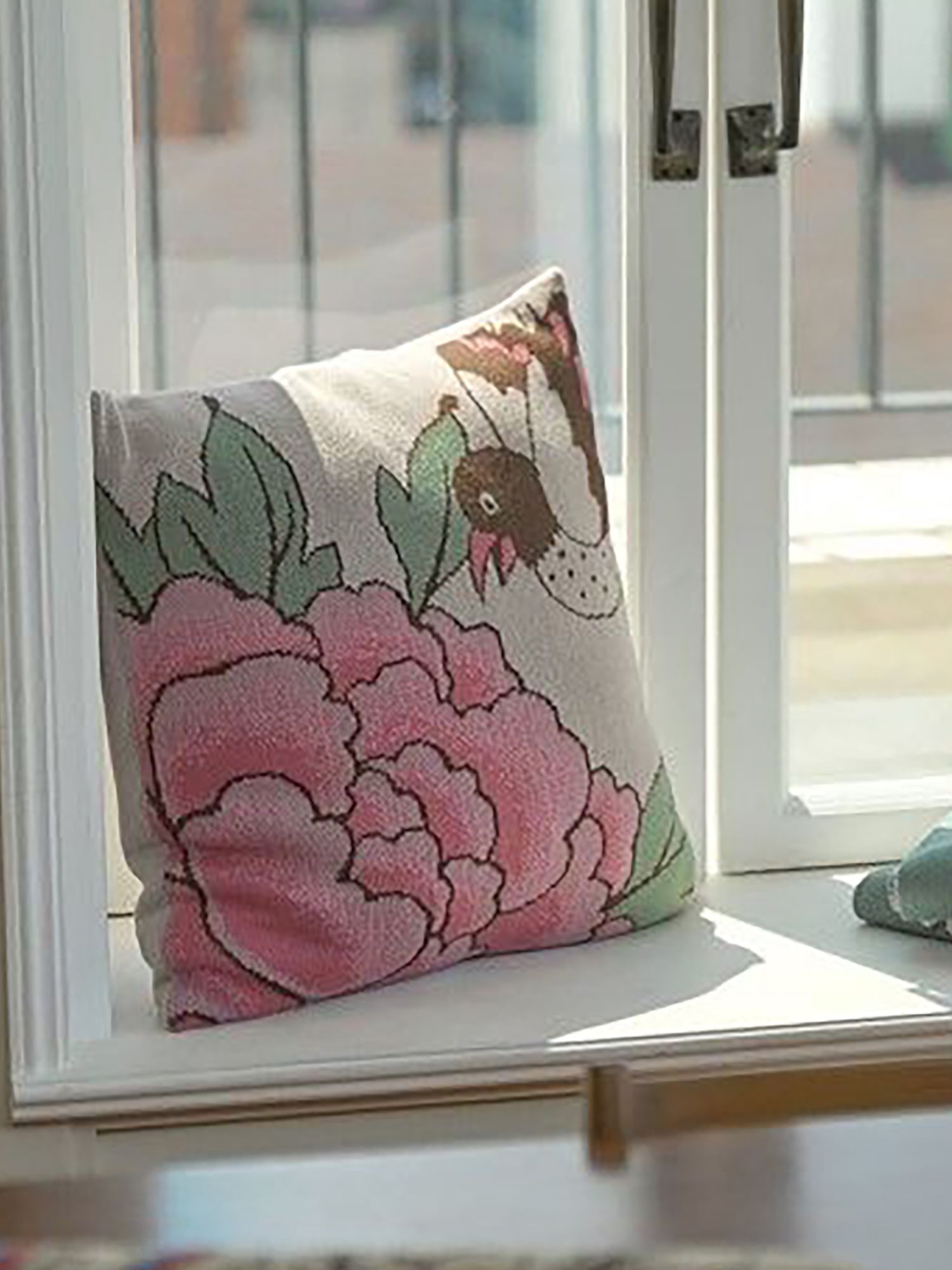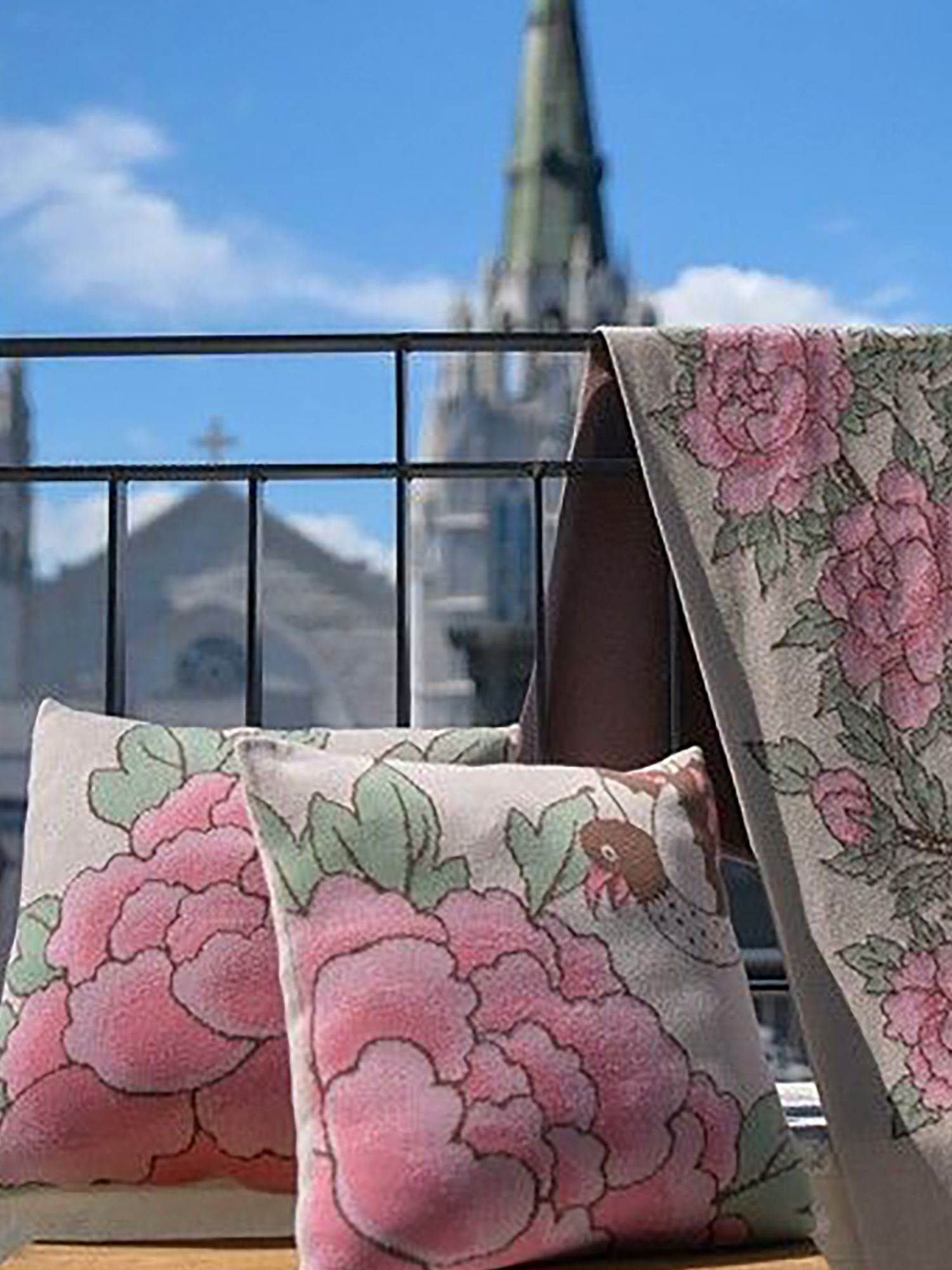 모란은 예로부터 부귀와 영화를 상징하는, 꽃 중에서도 가장 화려한 꽃으로 여겨졌습니다. 힘차게 뻗어나온 가지들과 만개한 모란꽃은 강렬한 생명력을 표현합니다. 공간에 생기와 기운을 불어넣는 감성적인 디자인의 쿠션커버 입니다.