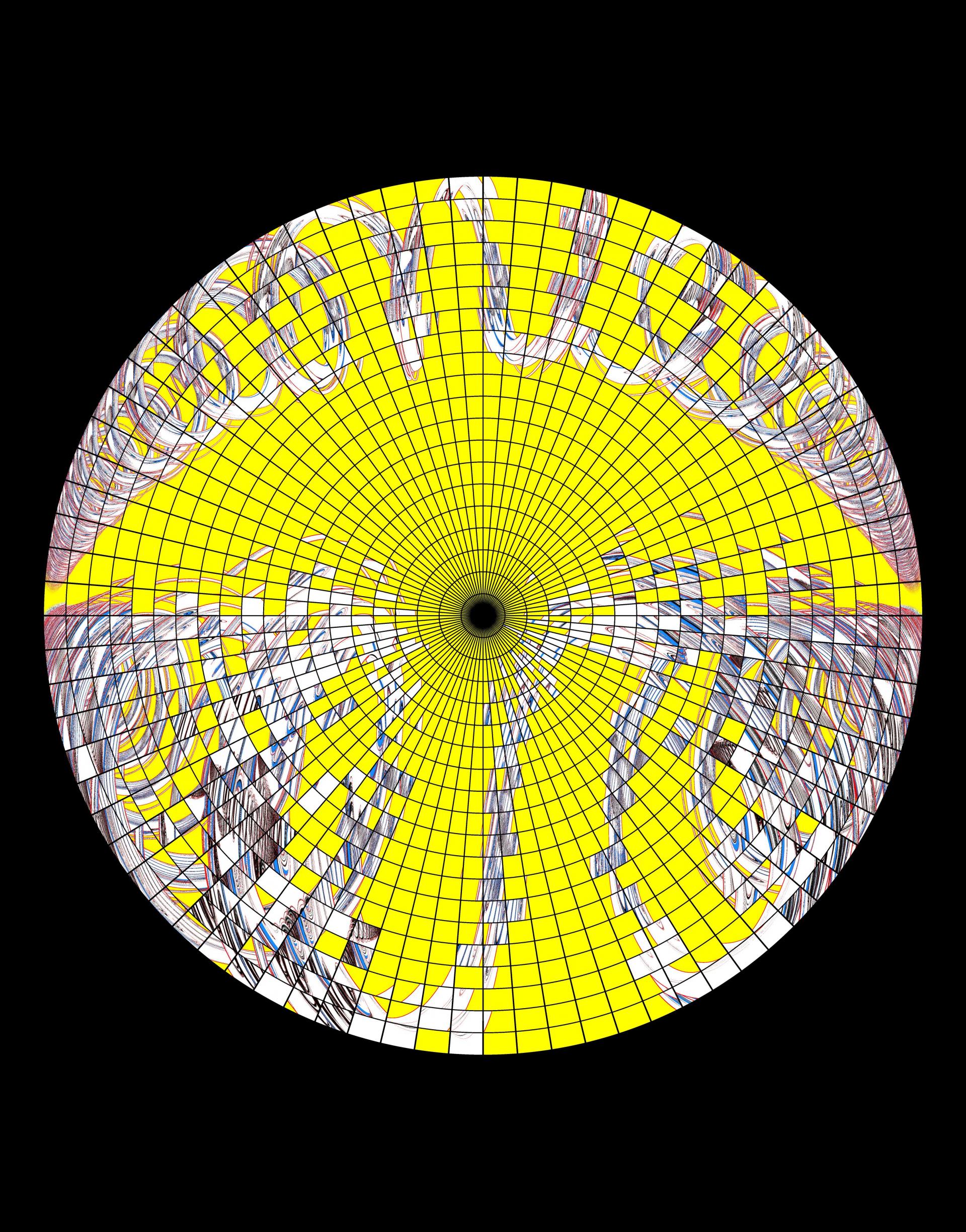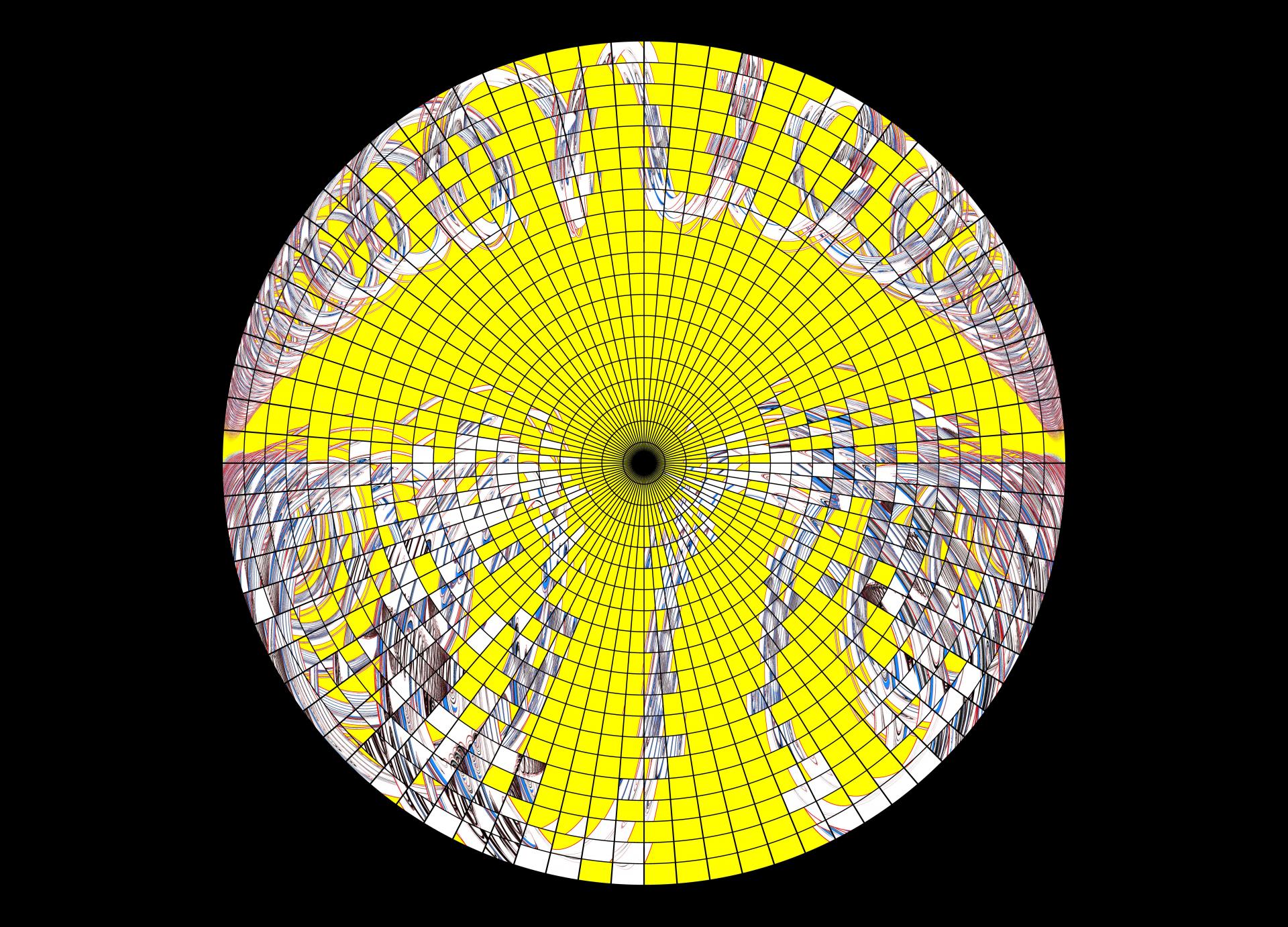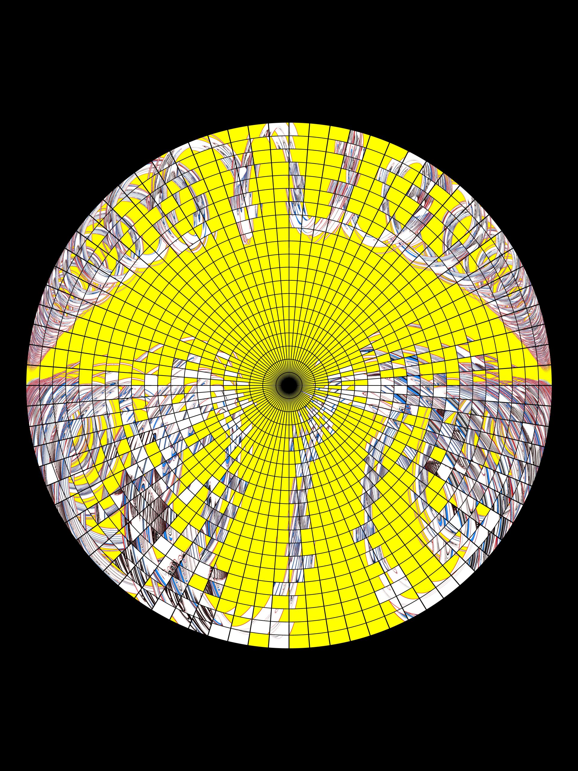 Spiralling Dome 시리즈 중 하나로, 어지러운 소용돌이의 형상을 강한 색체 대비와 함께 표현한 Spiralling 시리즈가 어안 렌즈 왜곡으로 투시된 에디션 모음입니다.