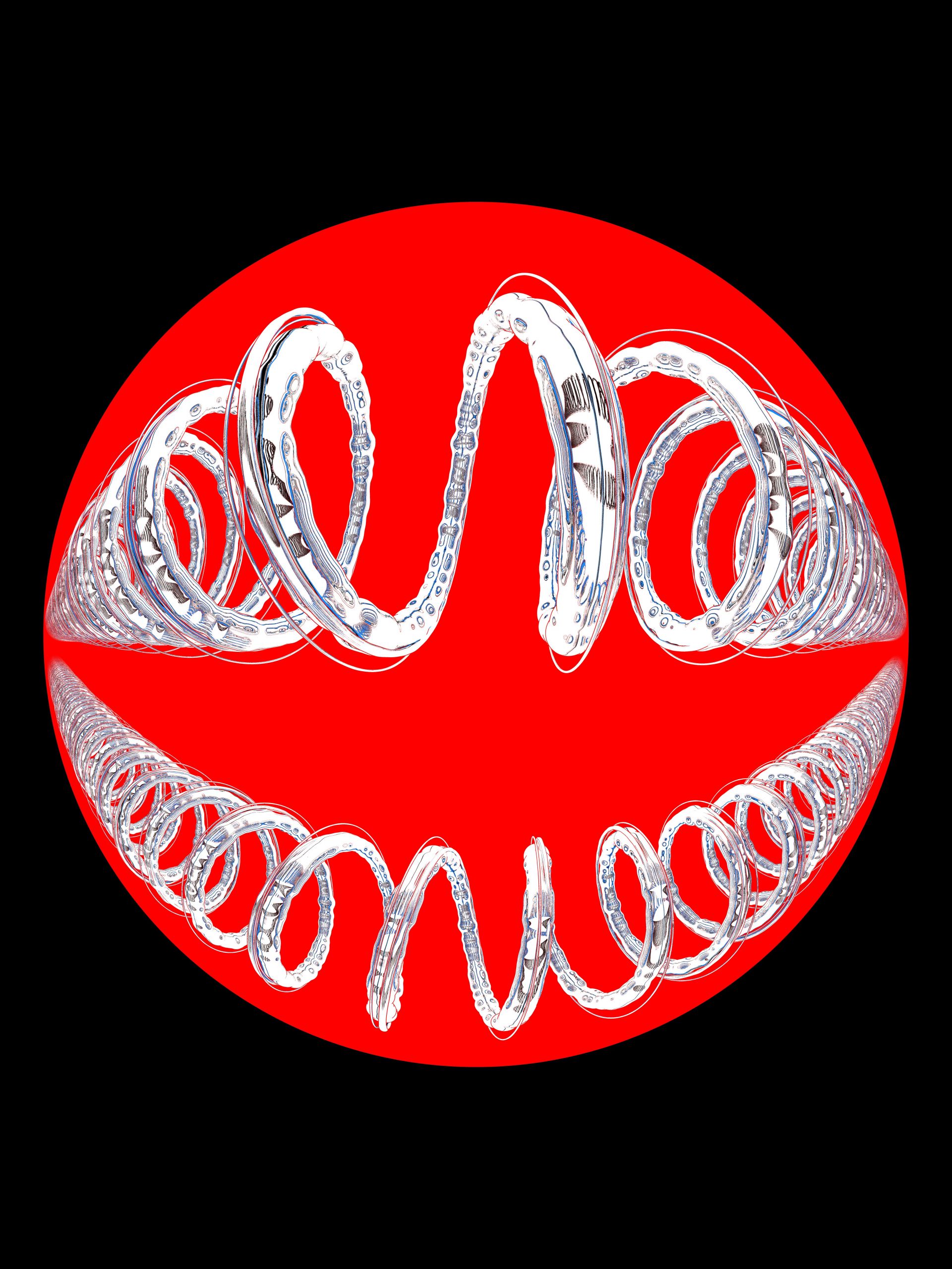 Spiralling Dome 시리즈 중 하나로, 어지러운 소용돌이의 형상을 강한 색체 대비와 함께 표현한 Spiralling 시리즈가 어안 렌즈 왜곡으로 투시된 에디션 모음입니다.