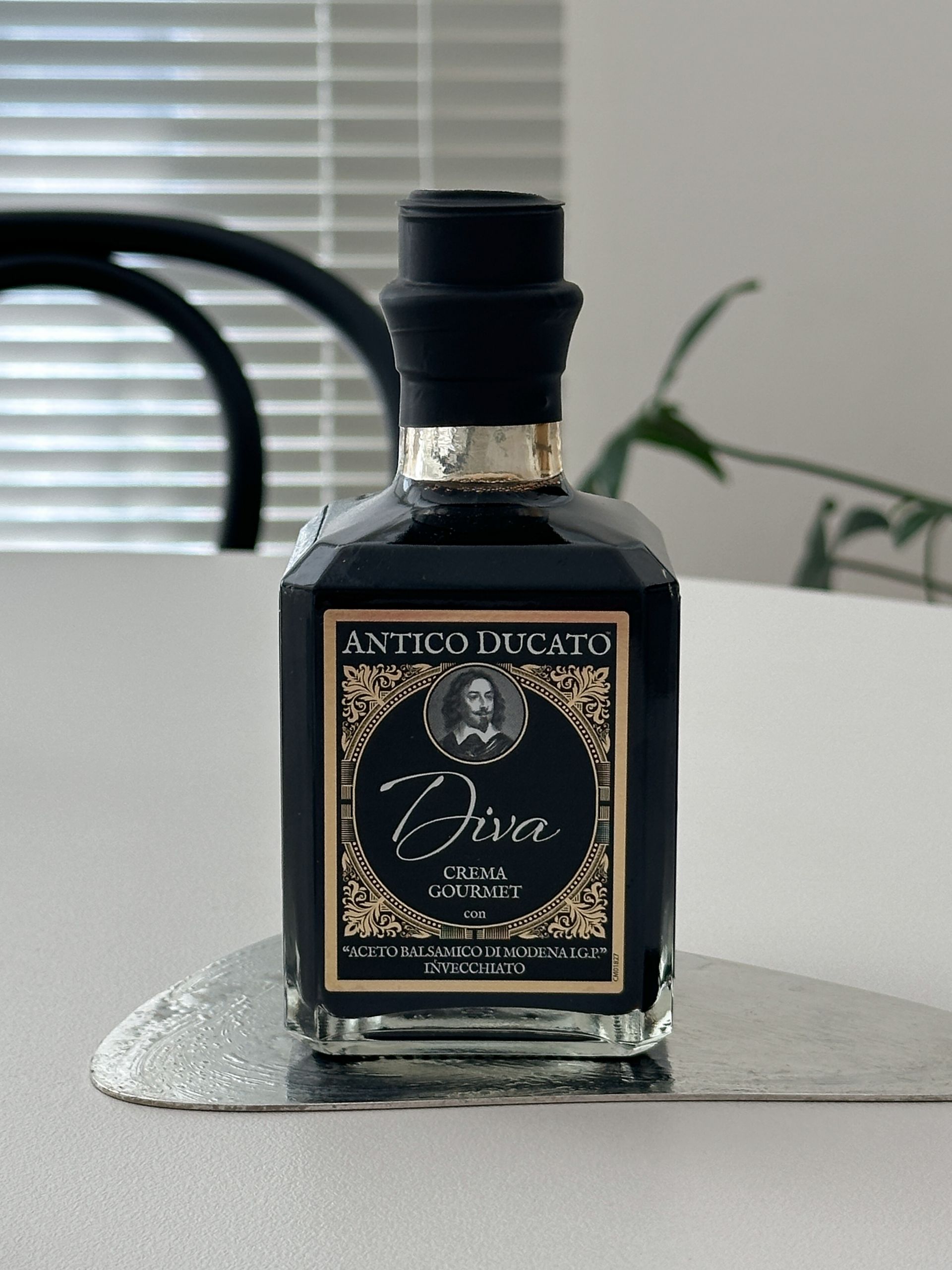 Diva Balsamico di Modena IGP는 모데나 전통 방식으로 제조된 클래식한 블랙 발사믹 식초로, 엄선된 포도즙과 와인 식초를 오크통에서 숙성해 깊은 풍미와 밸런스를 자랑합니다. 산도와 단맛의 조화가 뛰어나 샐러드, 구운 채소, 육류 요리에 두루 어울리며, 일상 속에서도 고급스러운 풍미를 더할 수 있는 기본이 되는 발사믹입니다.