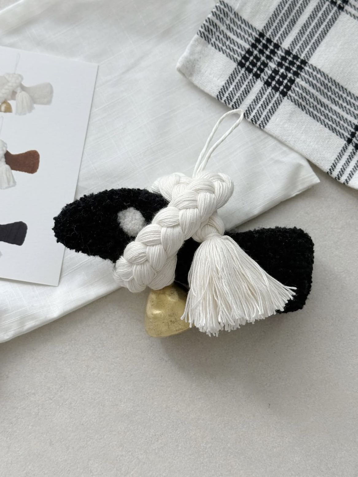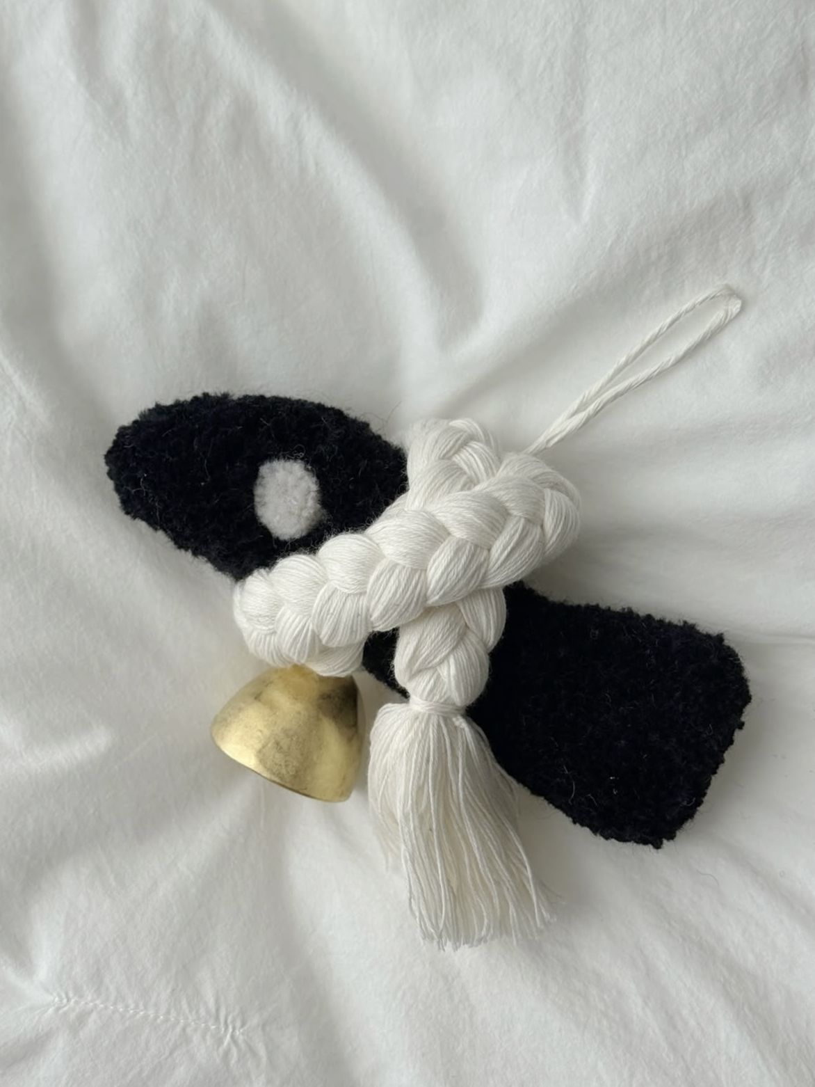 댕기 명주실 북어 풍경은 길상의 의미를 담고 있습니다. 길(吉)은 선(善)한 것, 상(祥)은 아름답고 기쁜 일의 징조로, 좋은 기운을 줄 것으로 믿는 대상들을 생활 속에 상징적으로 표현하며, 삶의 행복을 기원하는 마음입니다. 명주실 실타래는 긴 실과 같이 오래 살기(장수·長壽)와 일이 술술 풀리기를 의미하고, 말린 명태인 북어는 액을 막아주는 의미로 제사나 고사에서 제물로 사용됩니다. 주물로 제작된 종은 행운을 가져다 주는 맑고 청아한 소리를 냅니다. 댕기머리같이 길게 땋여진 명주실이 둘러진 <댕기 명주실 북어>는 길게 땋은 댕기의 모양으로 즐기실 수 도 있고, 조선시대 가채처럼 틀어 올린 스타일로도 즐기실 수 있습니다. 한국 전통 복(福)문화를 담은 공예상품 입니다. 명주실 북어에서 영감을 받은 '댕기 명주실 북어'는 원화의 느낌을 작가만의 감성으로 재구성해 멀게 만 느껴졌던 한국의 전통을 일상에서 편하게 경험할 수 있도록 했습니다.