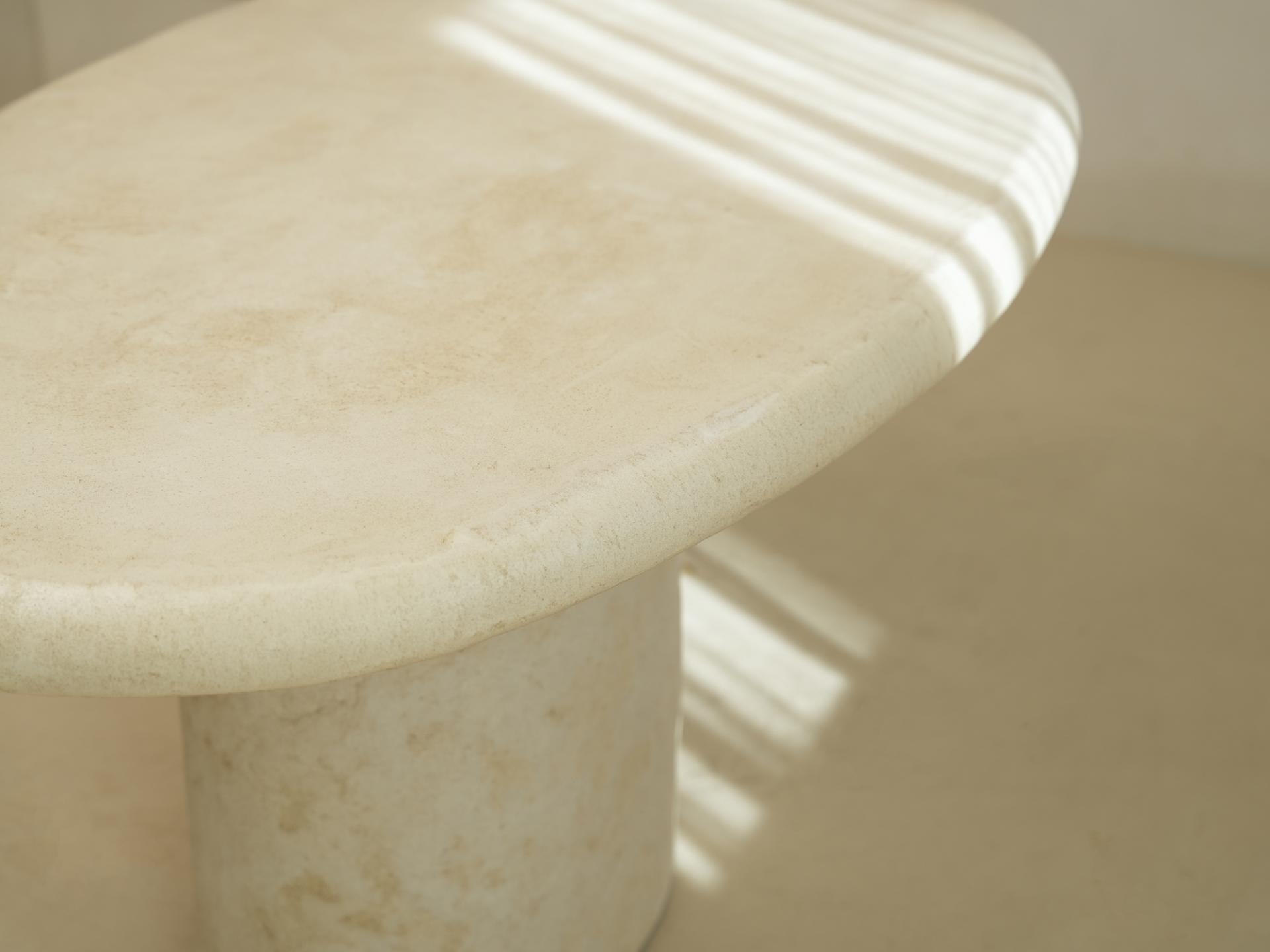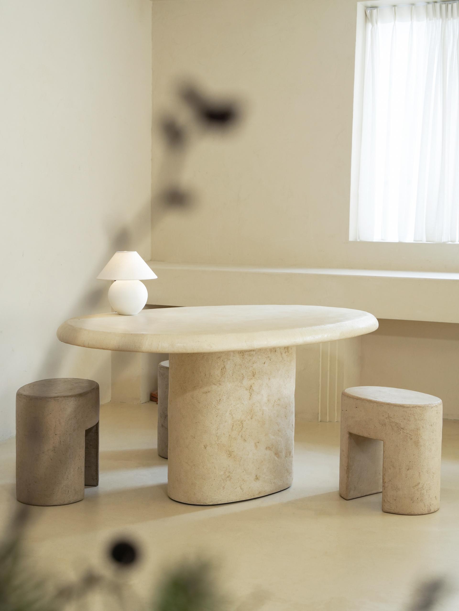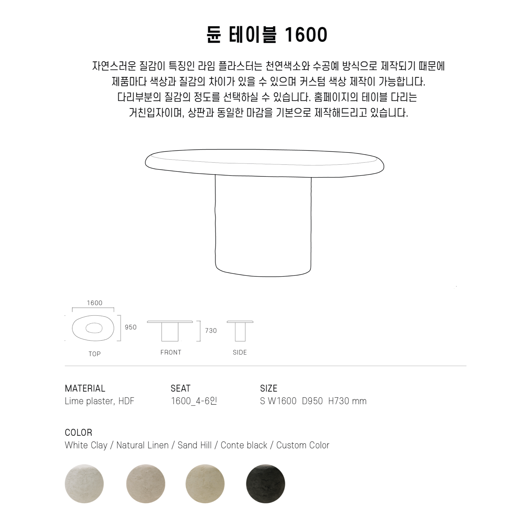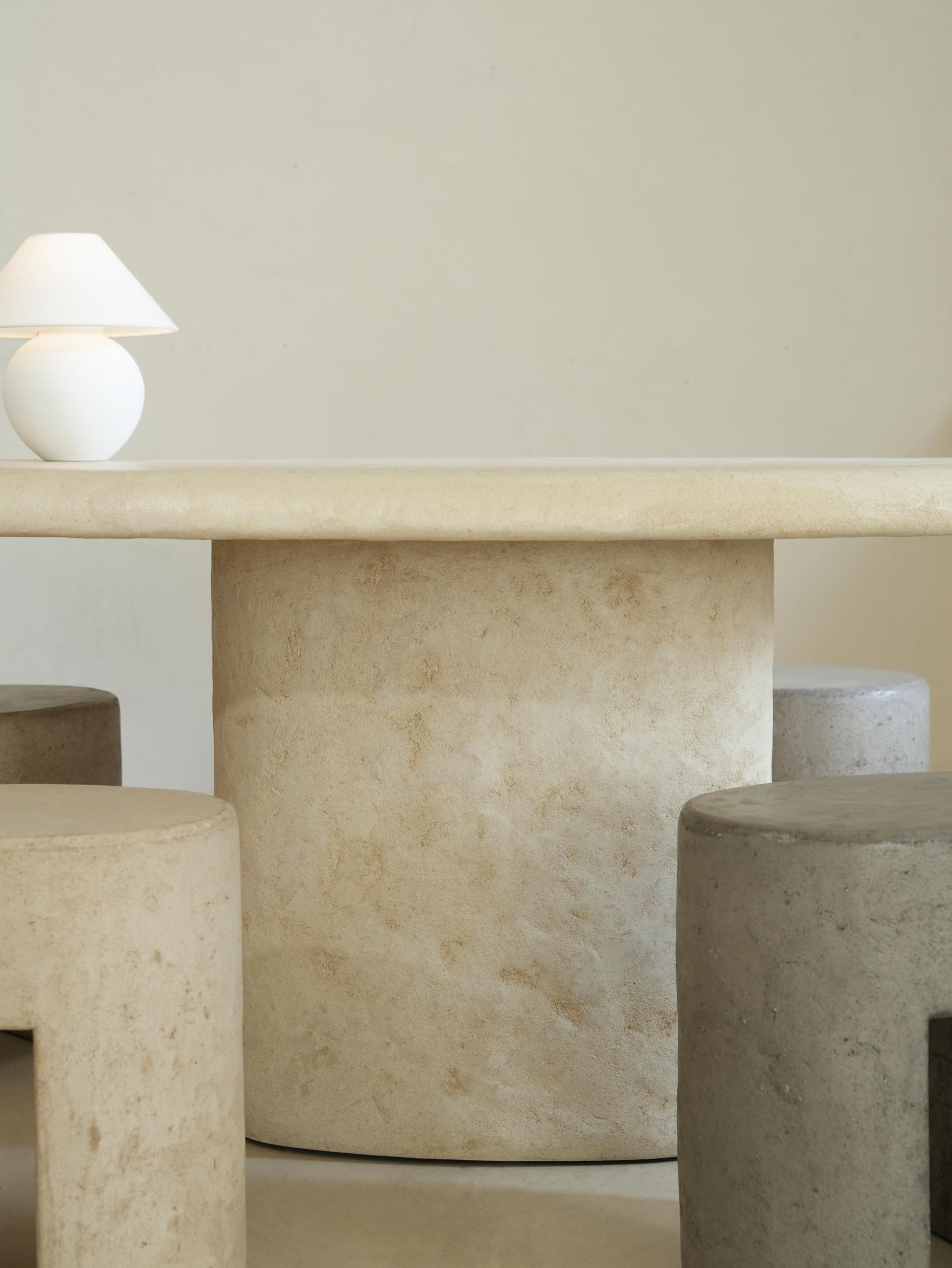 프리미엄 천연소재로 네추럴한 텍스처와 묵직한 깊이감이 감도는 핸드크래프트 퍼니처 다이닝 테이블로 테이블 상판에서 다리까지 하나의 소재로 덧입혀 유니크함을 더하고 라임플라스터 라인중 중강도 소재로 적당한 크기의 입자는 식탁 상판 Surface 부분의 오염과 기능에 최적화하여 제작됩니다. 플라처만의 에이징 기술로 질감을 살린 천연 퍼니처를 만나보세요.