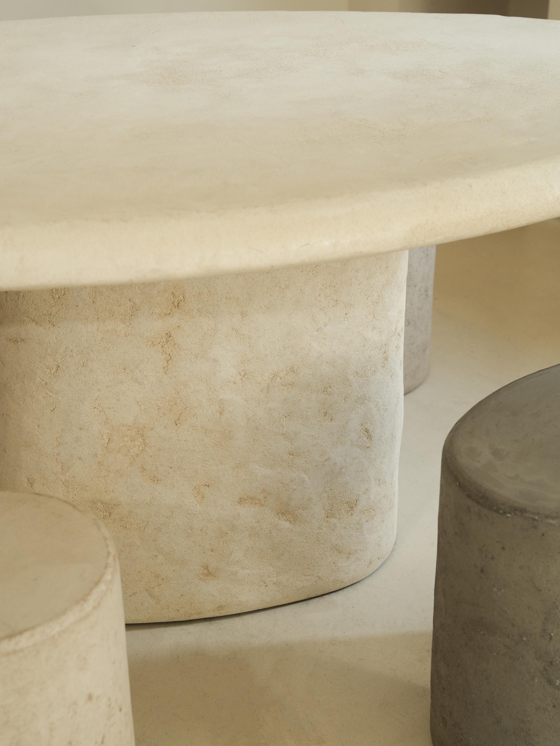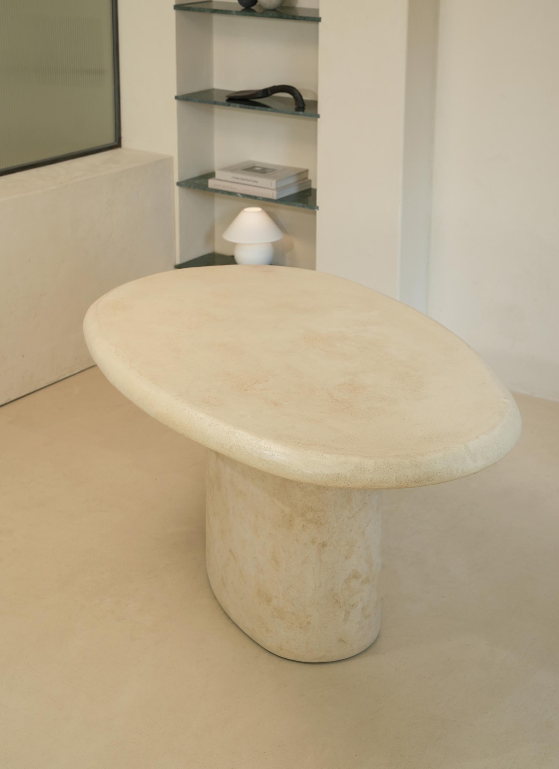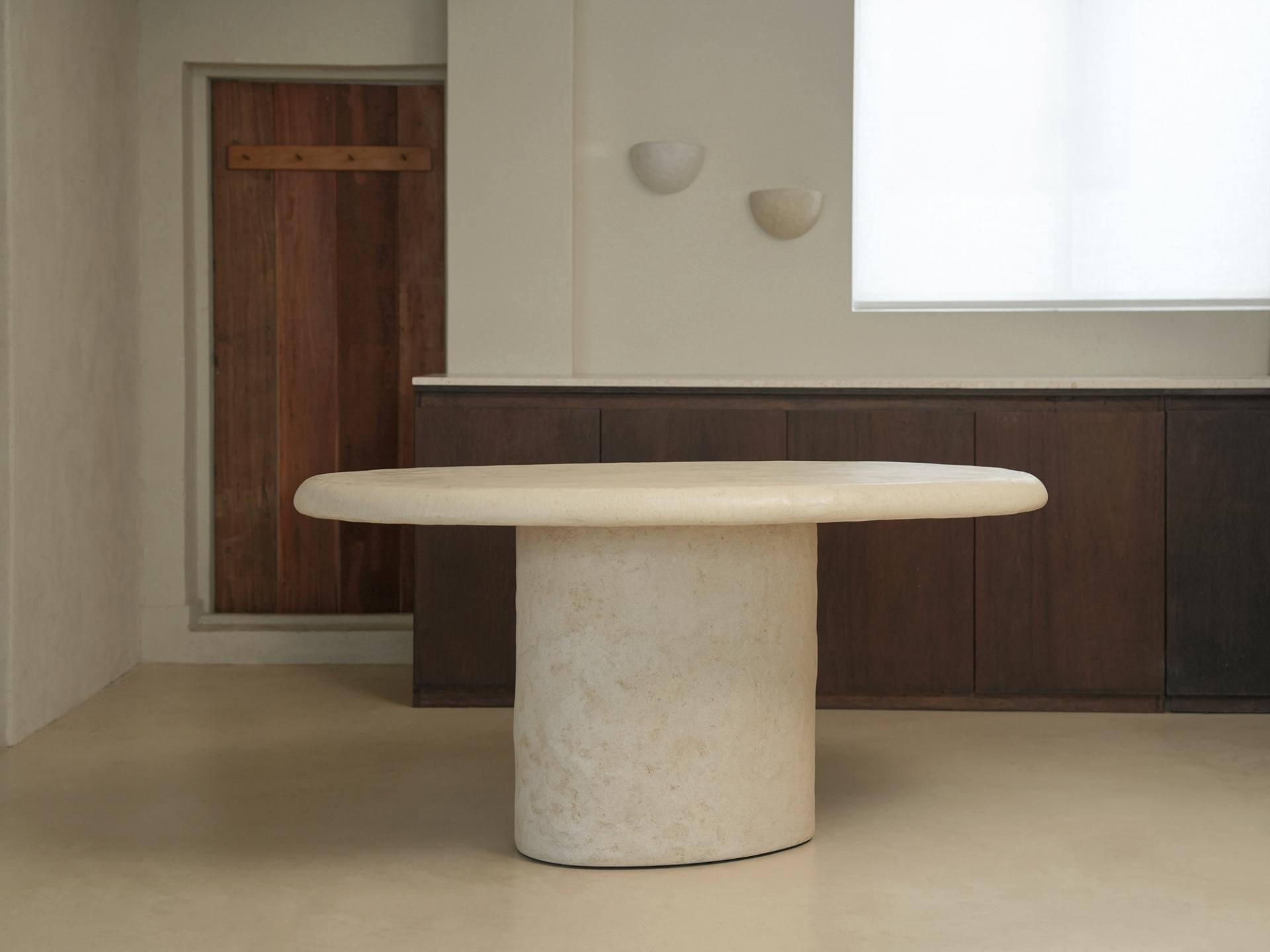 프리미엄 천연소재로 네추럴한 텍스처와 묵직한 깊이감이 감도는 핸드크래프트 퍼니처 다이닝 테이블로 테이블 상판에서 다리까지 하나의 소재로 덧입혀 유니크함을 더하고 라임플라스터 라인중 중강도 소재로 적당한 크기의 입자는 식탁 상판 Surface 부분의 오염과 기능에 최적화하여 제작됩니다. 플라처만의 에이징 기술로 질감을 살린 천연 퍼니처를 만나보세요.
