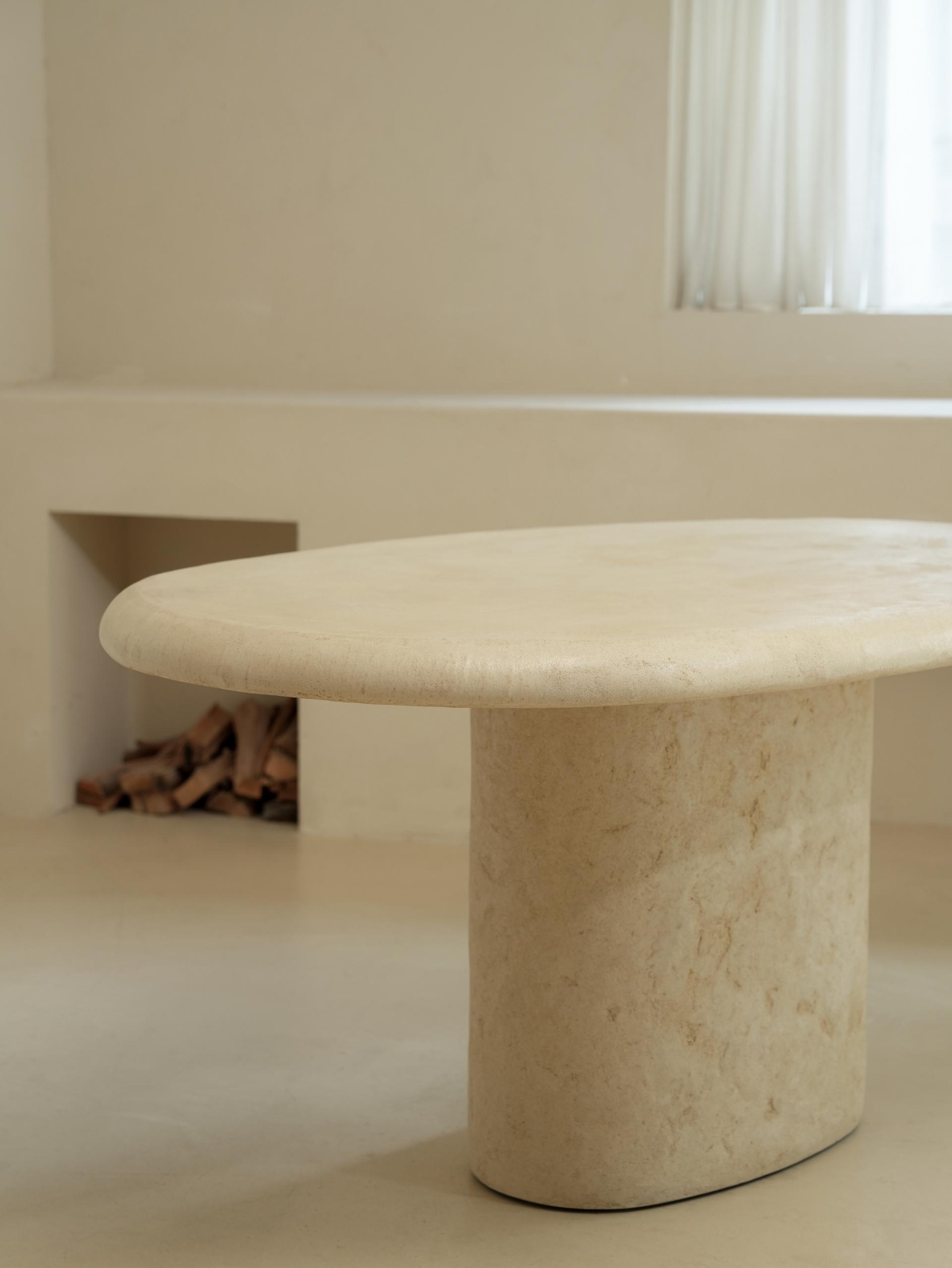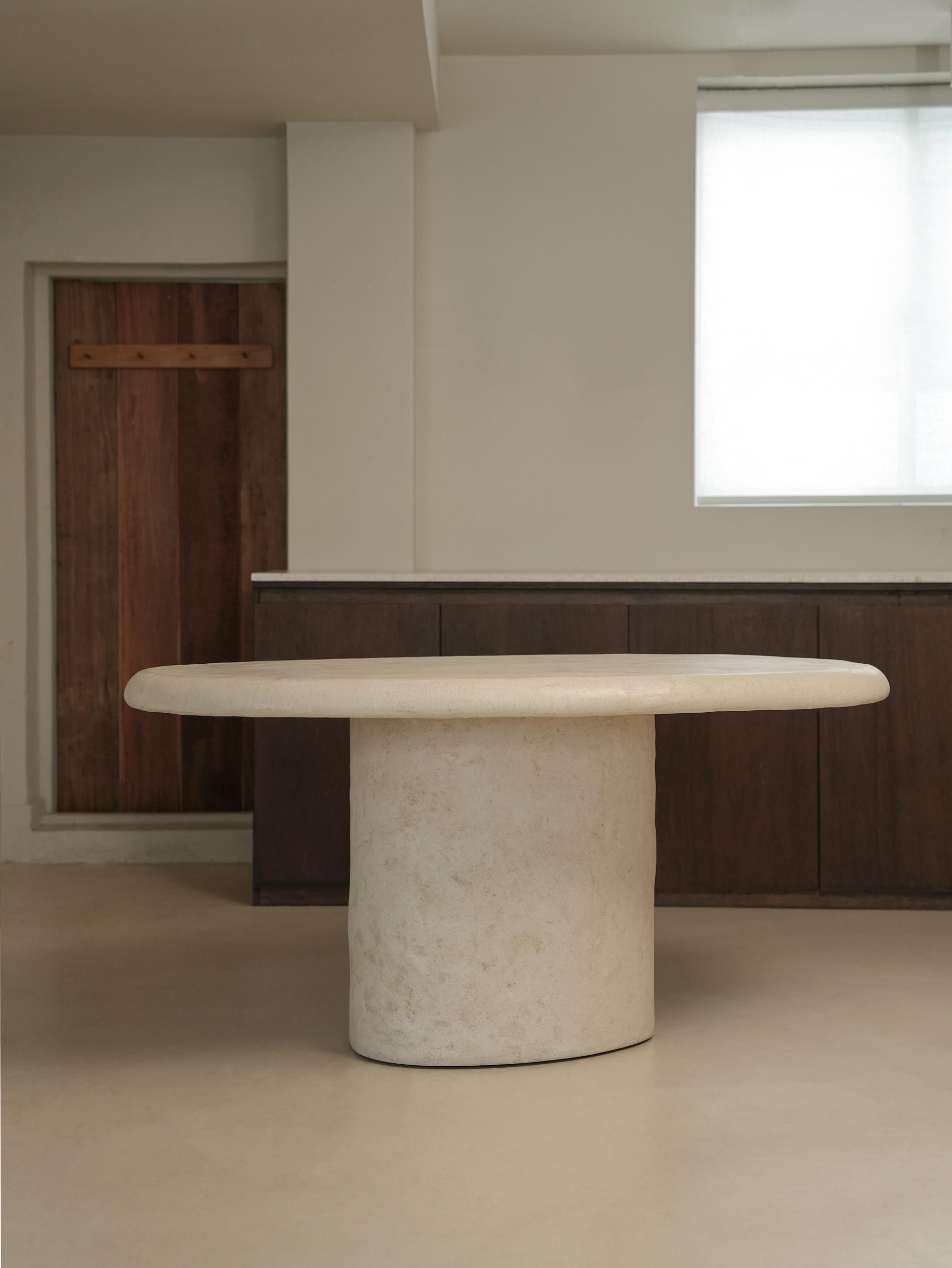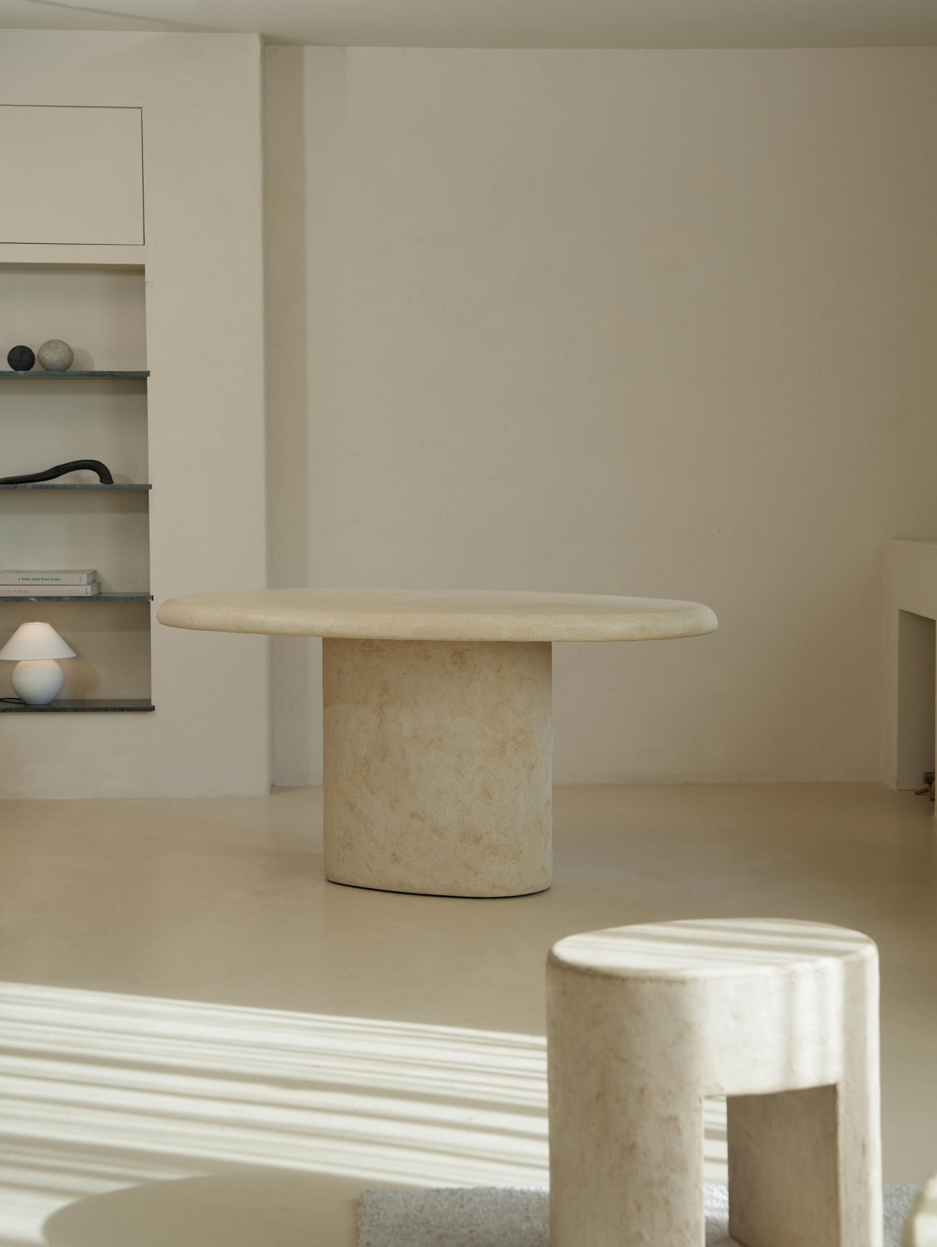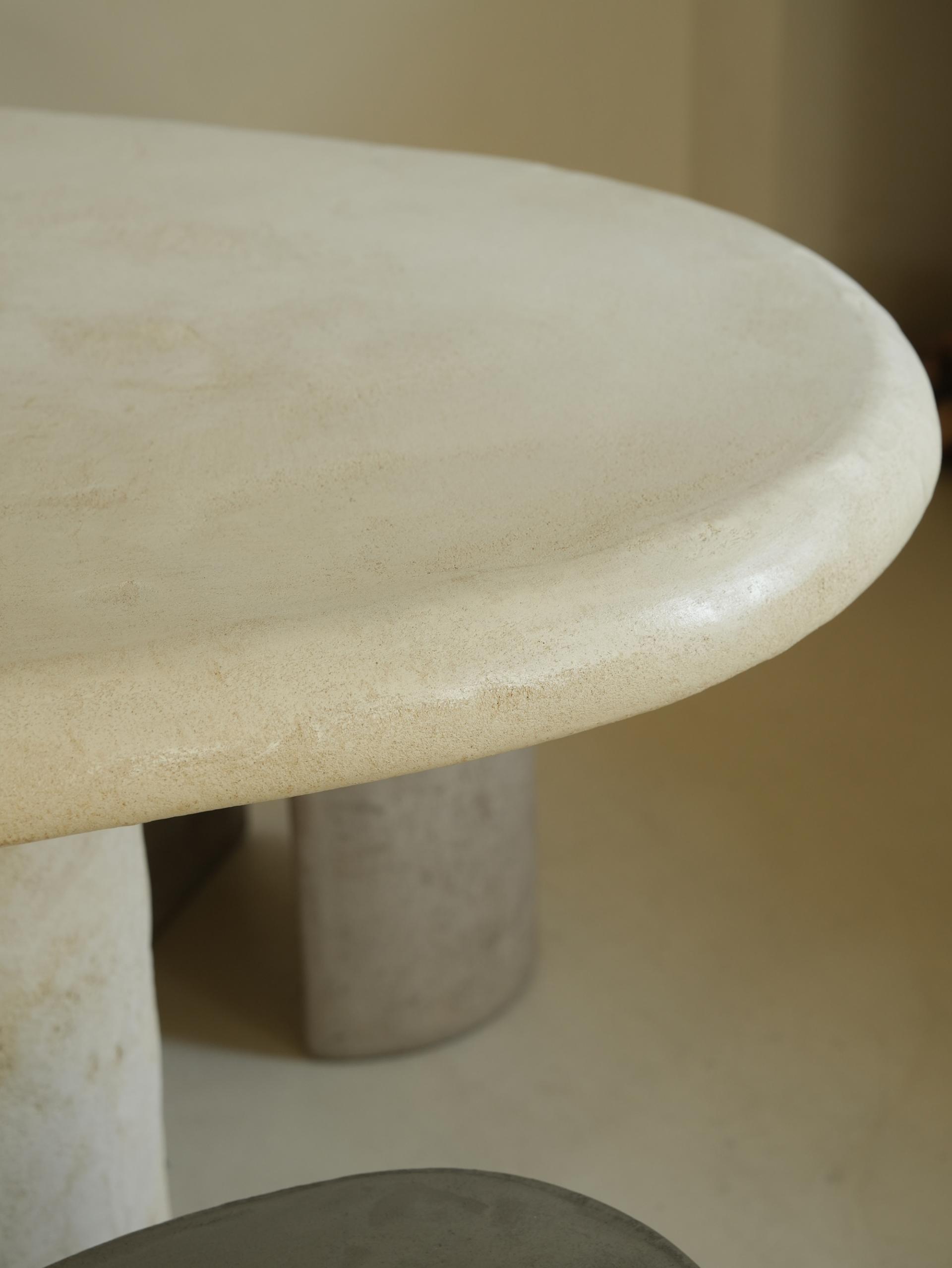 프리미엄 천연소재로 네추럴한 텍스처와 묵직한 깊이감이 감도는 핸드크래프트 퍼니처 다이닝 테이블로 테이블 상판에서 다리까지 하나의 소재로 덧입혀 유니크함을 더하고 라임플라스터 라인중 중강도 소재로 적당한 크기의 입자는 식탁 상판 Surface 부분의 오염과 기능에 최적화하여 제작됩니다. 플라처만의 에이징 기술로 질감을 살린 천연 퍼니처를 만나보세요.