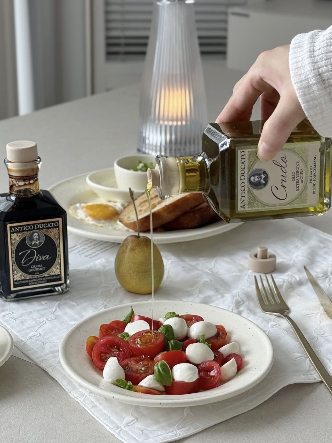 안티코 두카토 크루도(Extra Virgin Crudo)는 이탈리아 풀리아의 자가 올리브 농장에서 100% 오글리아롤라(Ogliarola) 품종으로 수확한 첫 수확 올리브만을 사용하여, 콜드 프레스 방식으로 신선하게 생산된 프리미엄 엑스트라버진 올리브 오일입니다. 밝은 녹색과 황금빛이 도는 색감, 아티초크 심, 풋잔디, 녹색 아몬드 등의 강한 풀향과 견과 풍미가 조화를 이루며, 입안에 퍼지는 감칠맛과 깔끔한 매콤함이 특징입니다 . 풍부한 폴리페놀 덕분에 바디감이 탄탄하고, 생선·해산물, 채소 샐러드, 오레키에테 파스타 등 다양한 요리의 마무리 오일로 특히 뛰어나며, 수상 이력을 통해 그 품질을 인정받았습니다.