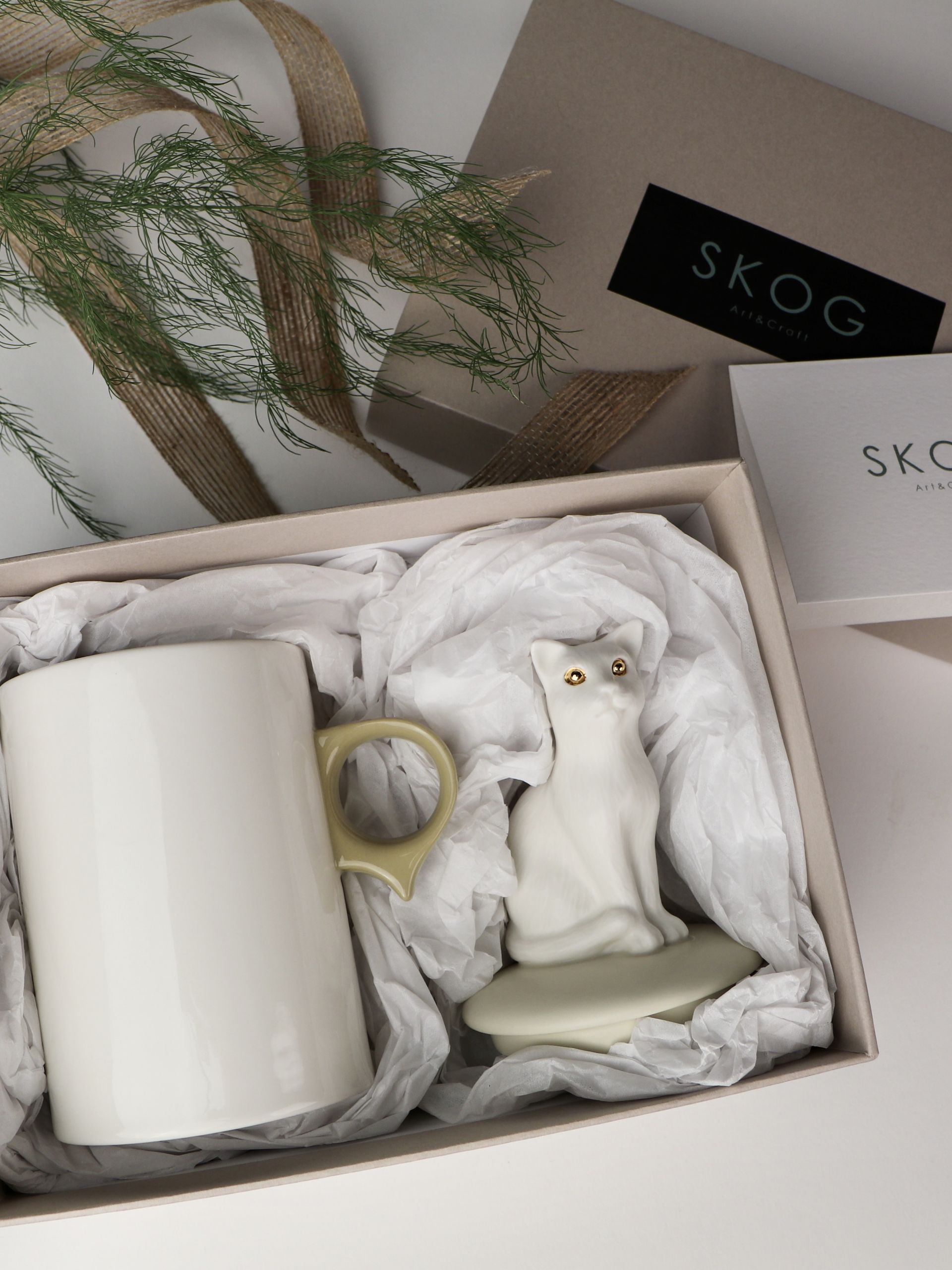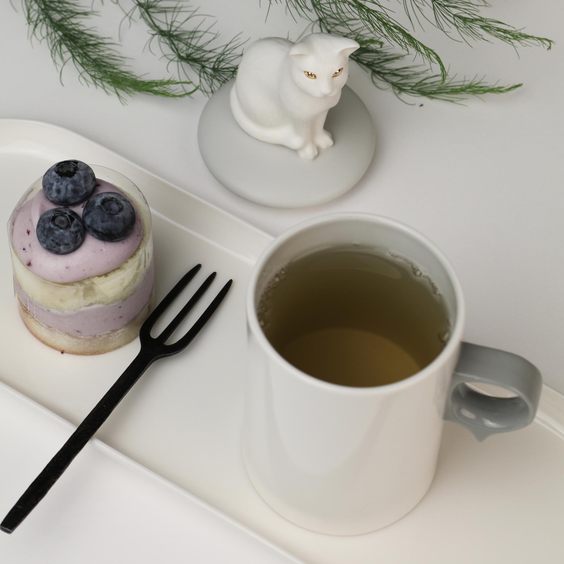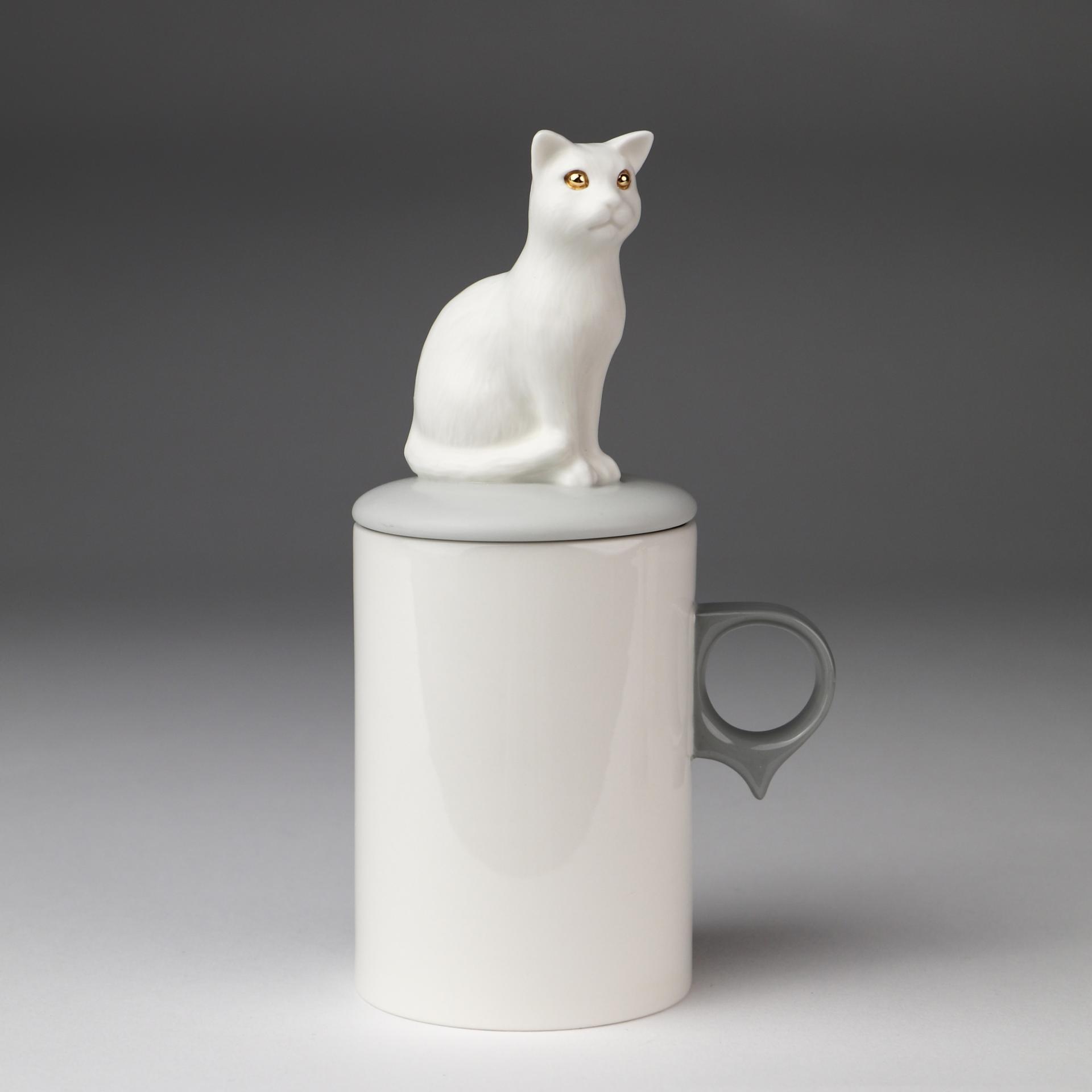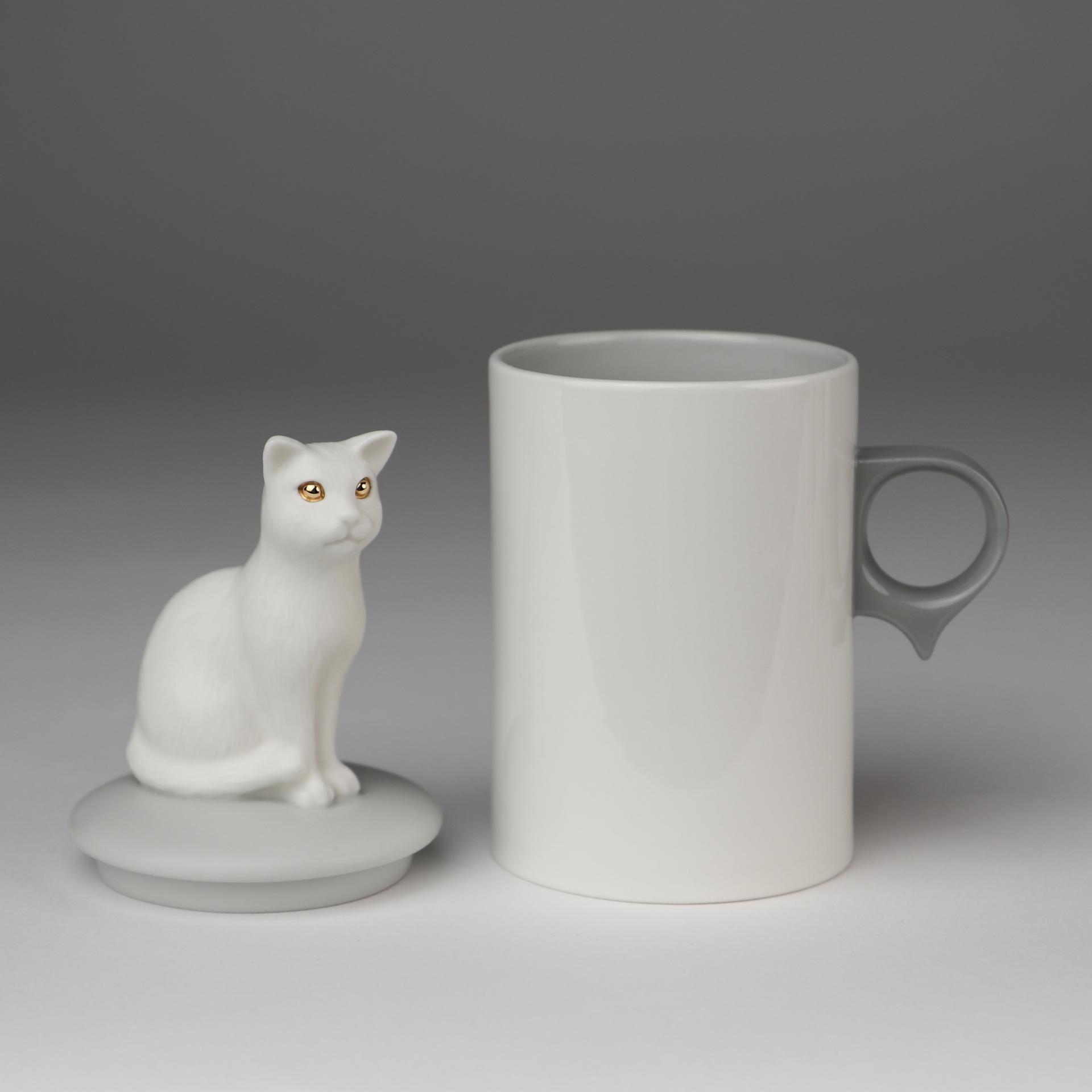 SKOG의 '고양이 오브제컵'은 세밀하게 조각된 고양이 오브제 뚜껑과 일상에서 자주 사용되는 컵의 조화로 만든 '일상 속 오브제 컵'입니다. 친근한 고양이 오브제가 컵 뚜껑의 손잡이 역할을 할 수 있도록 하였습니다. 고양이 오브제 뚜껑은 부드러운 촉감의 무광유약을, 컵 부분은 실용성을 고려한 투명 광택유약을 사용하였습니다. 여러번의 수정과정을 거쳐 특별하게 디자인된 컵 손잡이의 아랫부분 돌출부는 손가락 지지대 역할을 하여 안정적으로 컵을 잡을 수 있게 해줍니다.