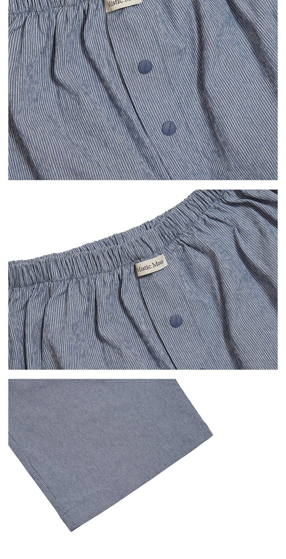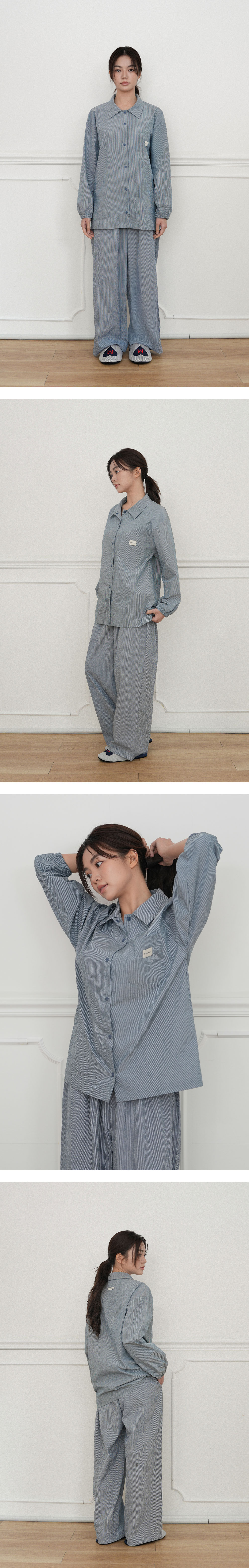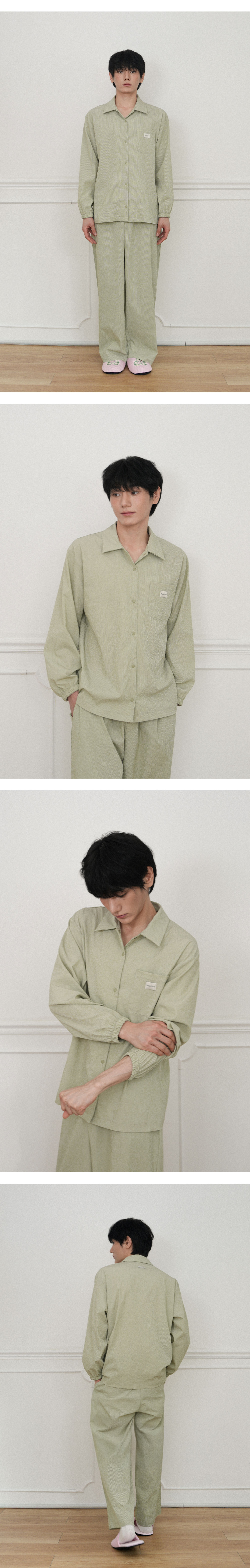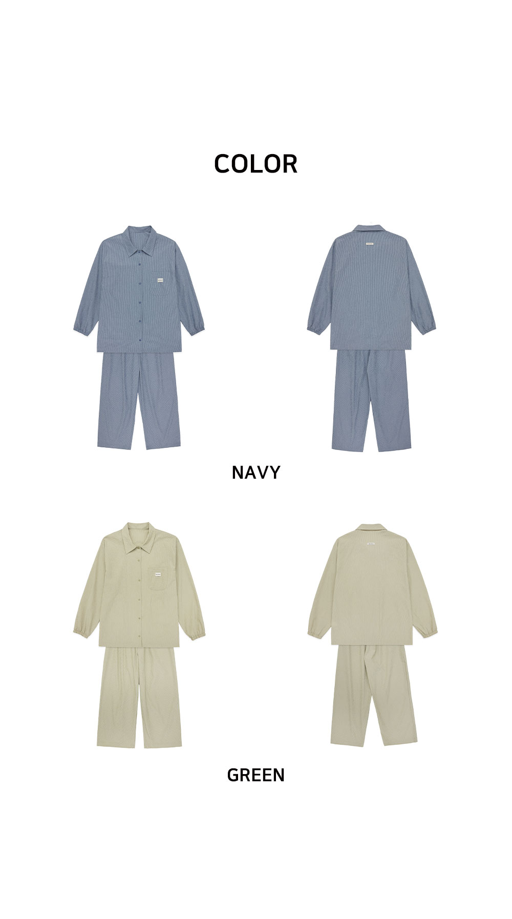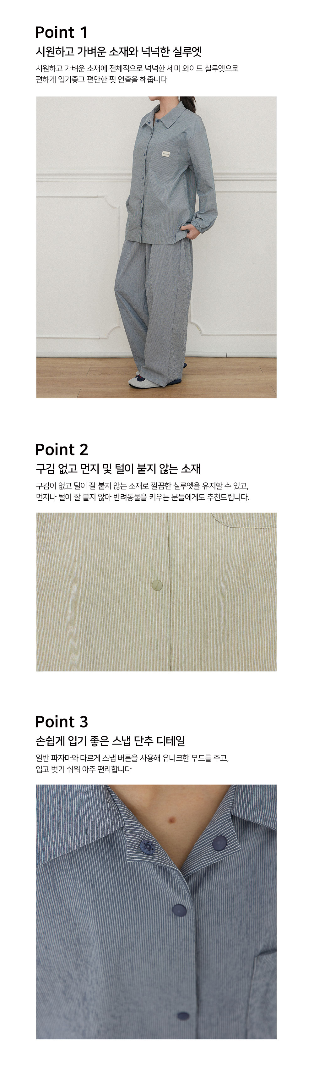 빈티지한 무드의 시원하고 가벼운 소재의 파자마 세트 입니다. 넉넉한 핏과 유니크하고 구김없는 소재로 가볍게 입기 좋고,깔끔한 디자인으로 홈웨어 뿐만 아니라 일상복으로도 활용하기 좋습니다.여유있는 허리 밴딩으로 편안하고, 버튼이 아닌 스냅 버튼으로 입고 벗기 편합니다감성과 실용성을 모두 담은 디자인으로 홈웨어뿐만 아니라 다양한 룩에 재치 있게 믹스 매치 해보세요.