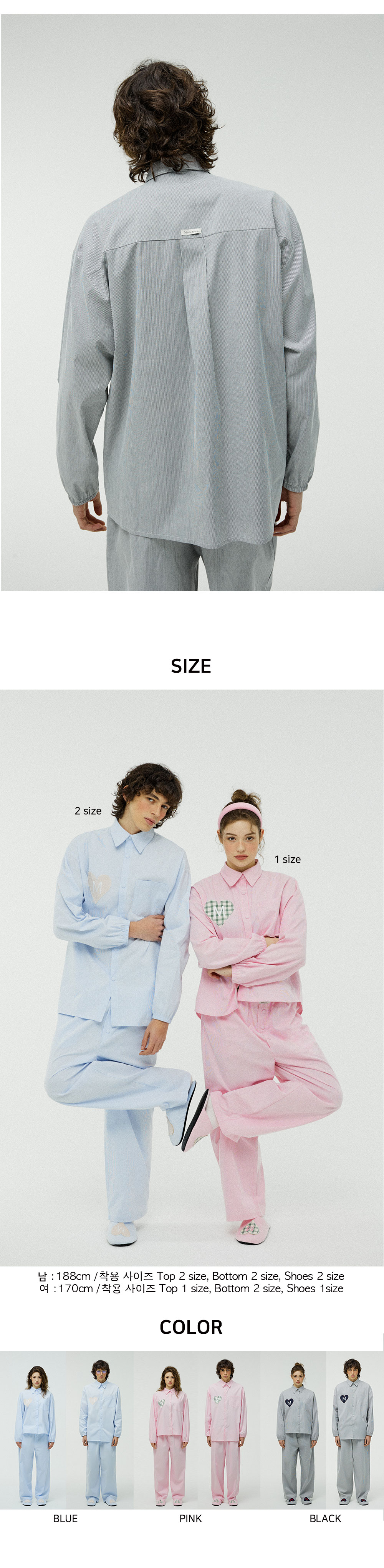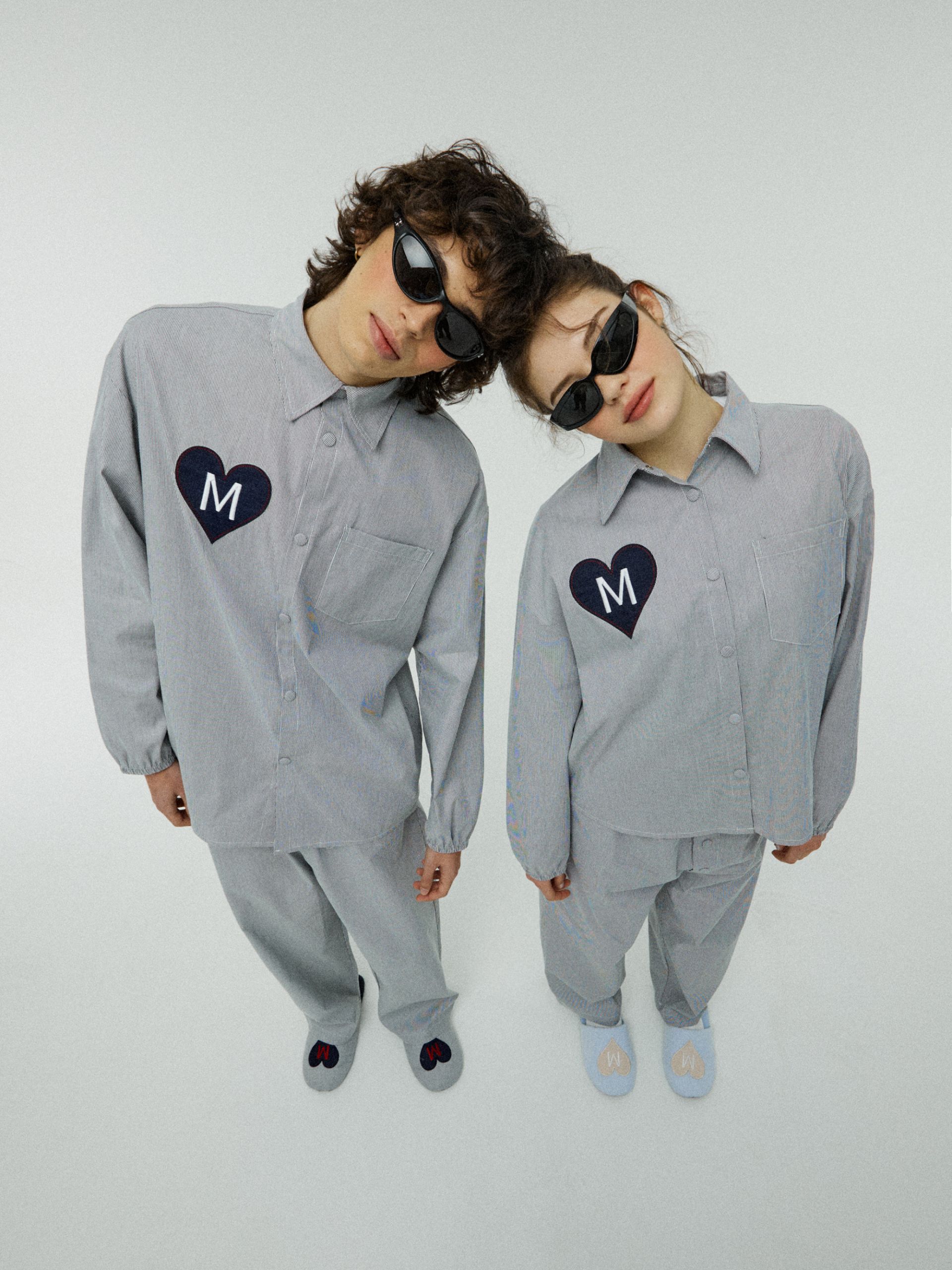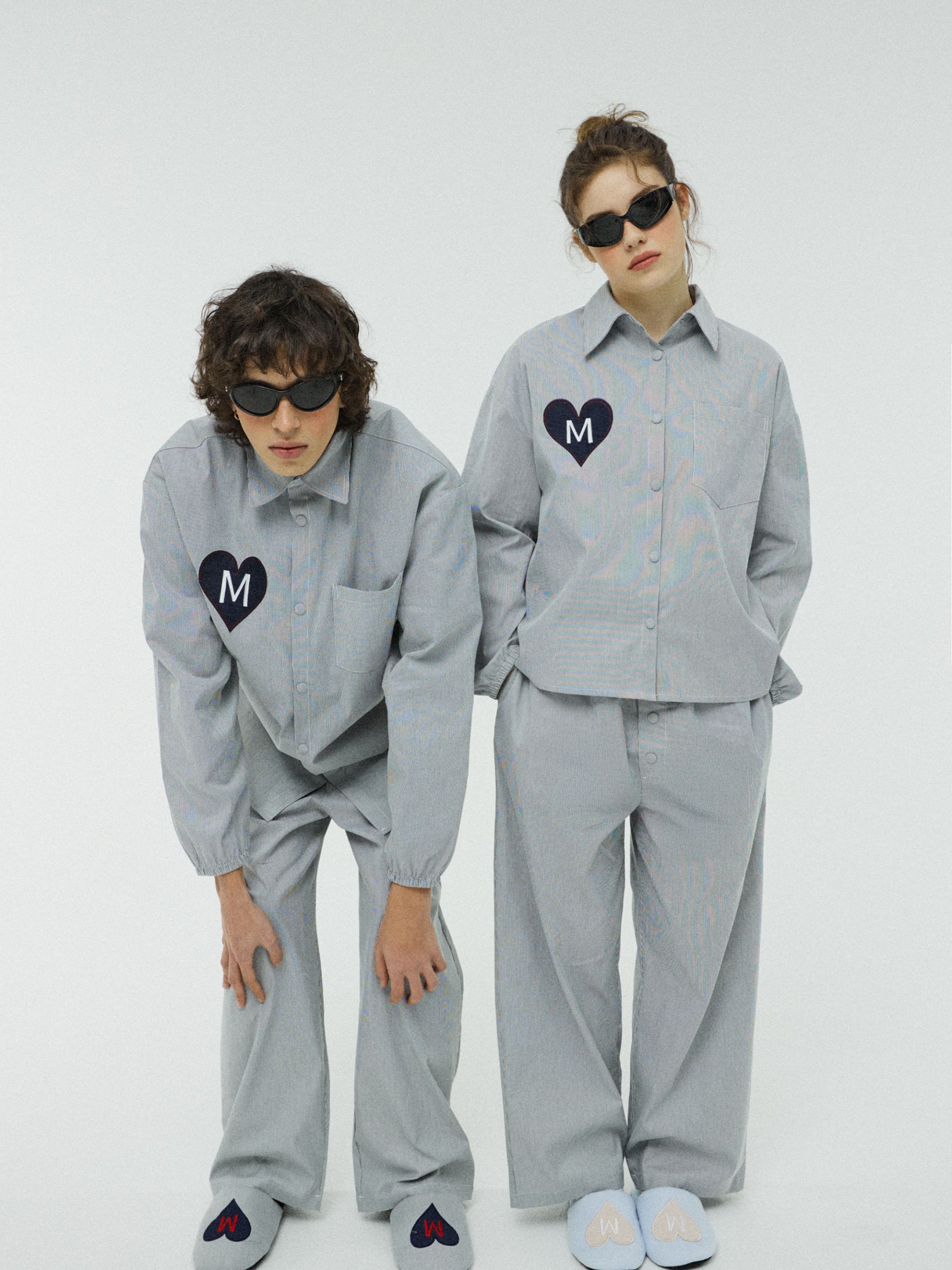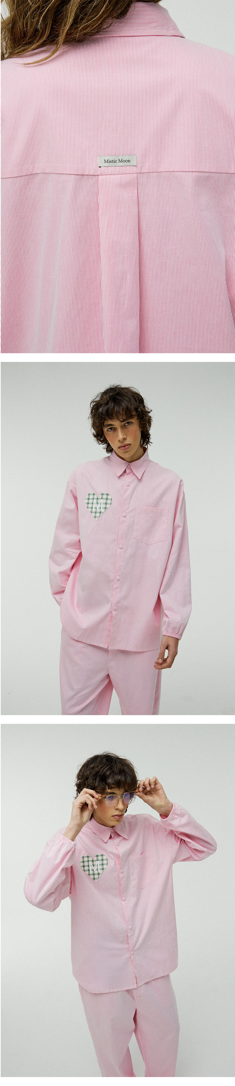 고급스러운 스트라이프 소재와 러블리한 하트 패치가 돋보이는 파자마 세트입니다. 넉넉한 핏과 유니크하고 탄탄한 소재로 가볍게 입기 좋고, 버튼이 아닌 스냅 버튼으로 입고 벗기 편하고, 소매 밴딩으로 쉽게 소매를 걷고, 고정할 수 있습니다. 감성과 실용성을 모두 담은 디자인으로 홈웨어뿐만 아니라 다양한 룩에 재치 있게 믹스 매치해 보세요.