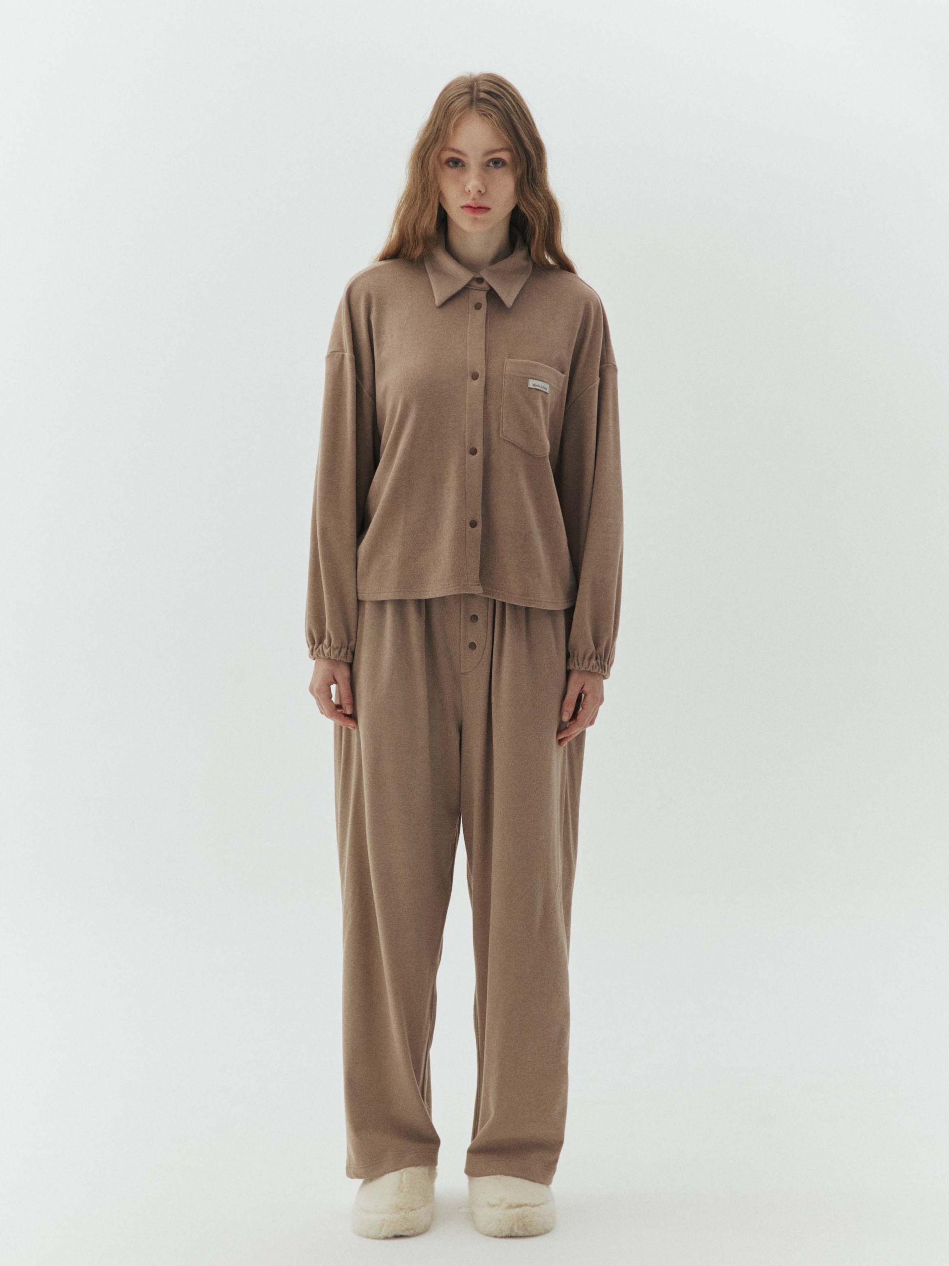 short, long 두 사이즈로 남녀공용 파자마 셔츠입니다. 넉넉한 핏과, 가볍지만 포근한 소재로 추운 날씨 따뜻하게 입기 좋습니다.버튼이 아닌 스냅 버튼으로 입고 벗기 편하고, 소매 밴딩으로 쉽게 소매를 걷고, 고정할 수 있습니다.감성과 실용성을 모두 담은 디자인으로 홈웨어뿐만 아니라 다양한 룩에 재치 있게 믹스 매치 해보세요.