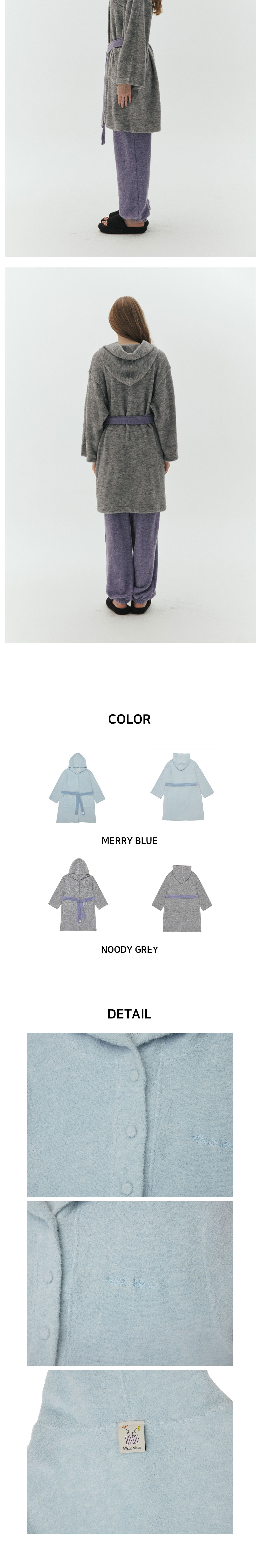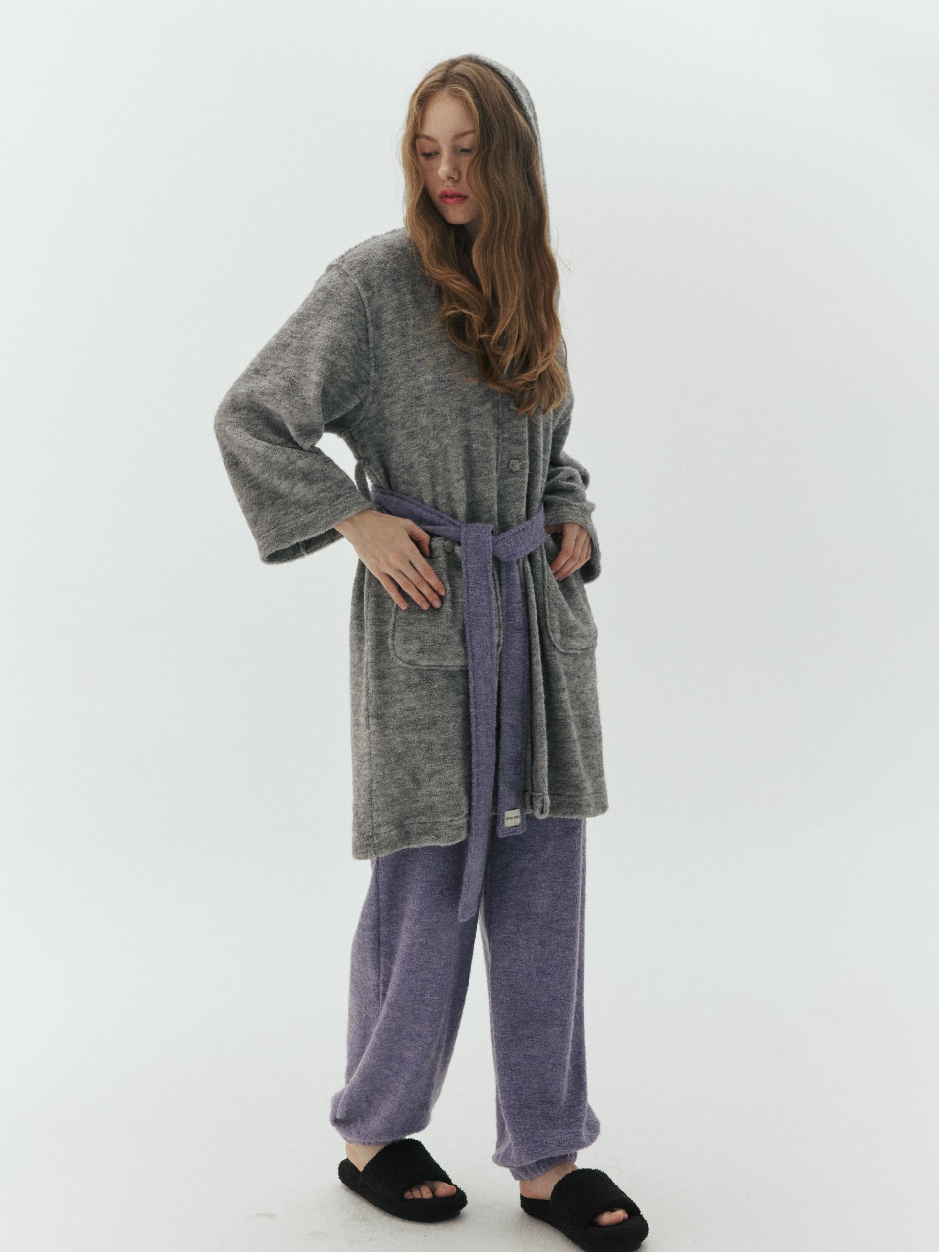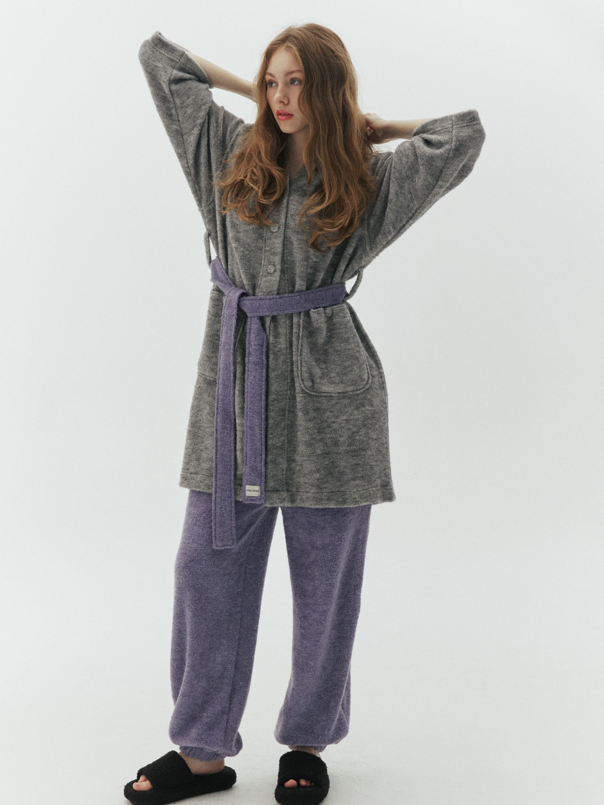고급스러운 분위기가 가득한 오버핏 로브, 롱팬츠 세트입니다. 유니크하고 부드러운 태리 소재로 겨울철 따뜻하고 가볍게 입기 좋고 심플한 컬러에 배색 포인트를 줘 유니크한 무드를 더해줍니다. 감성과 실용성을 모두 담은 디자인으로 홈웨어뿐만 아니라 다양한 룩에 재치 있게 매치 해보세요.