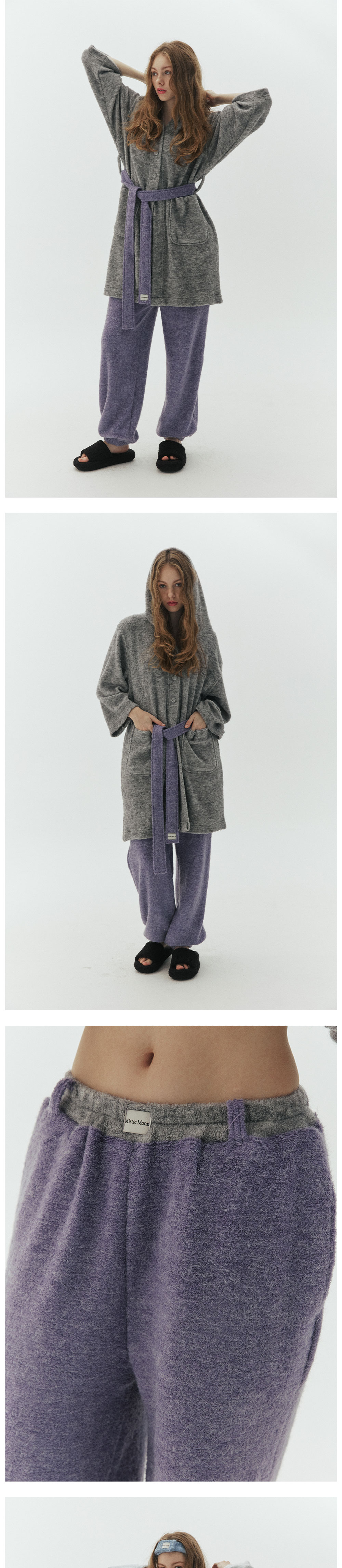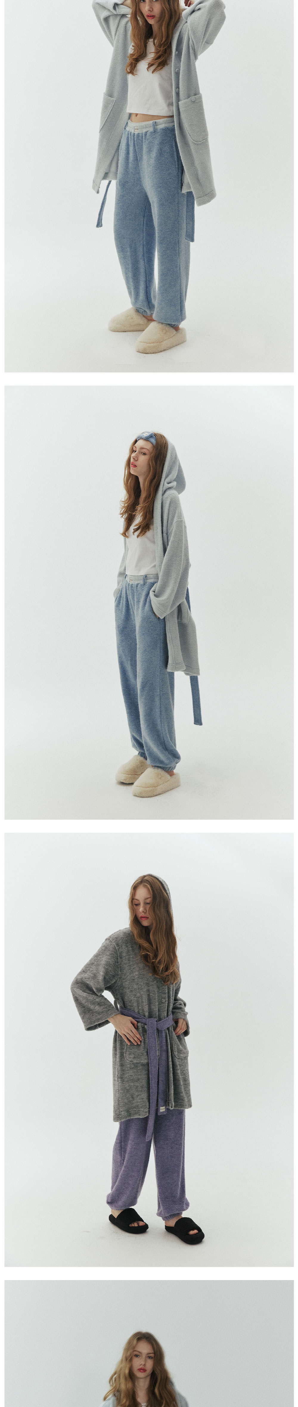 고급스러운 분위기가 가득한 타월 롱 팬츠입니다. 유니크하고 부드러운 태리 소재로 겨울철 따뜻하고 가볍게 입기 좋고 심플한 컬러에 배색 포인트를 줘 유니크한 무드를 더해줍니다. 감성과 실용성을 모두 담은 디자인으로 홈웨어뿐만 아니라 다양한 룩에 재치 있게 매치 해보세요.