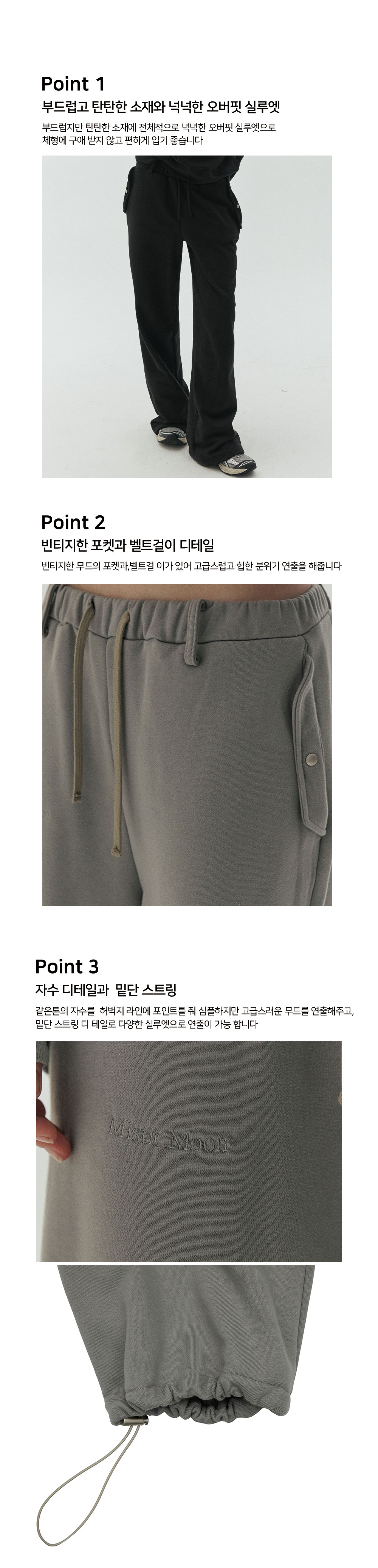 고급스럽고 빈티지한 무드가 돋보이는 스웻팬츠 입니다. 전체적으로 넉넉한 오버핏의 실루엣으로 편하게 입기 좋습니다. 얇은 허리 라인과, 벨트걸이가 있어 다양한 아이템과 믹스매치 하기 좋고, 밑단 스트링으로 자유로운 연출이 가능합니다. 감성과 실용성을 모두 담은 디자인으로 홈웨어 뿐만 아니라 다양한 룩에 재치있게 매치해 보세요.