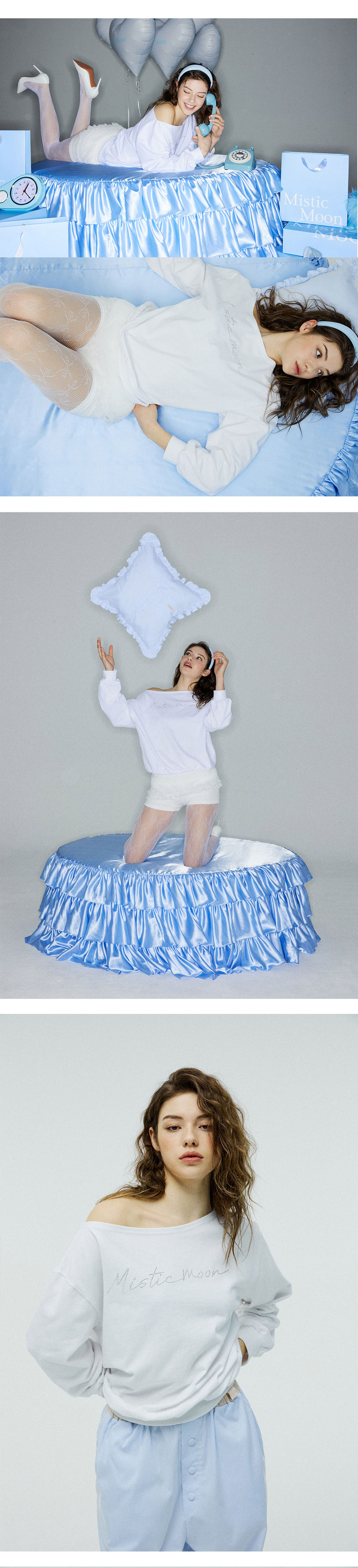 코지하고 고급스러운 무드가 가득한 큐빅 오프숄더 티셔츠입니다. 전체적으로 넉넉한 오버핏의 실루엣으로 편하게 입기 좋고 여리여리한 무드를 연출해 줍니다. 감성과 실용성을 모두 담은 디자인으로 홈웨어 뿐만 아니라 다양한 룩에 재치있게 매치해 보세요.